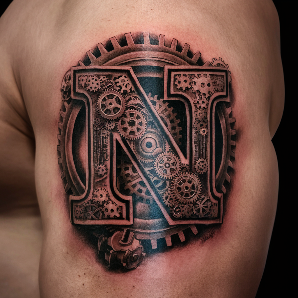 For a futuristic or steampunk feel, a mechanical “N” features elements like gears, cogs, and metallic lines, creating a robotic look.