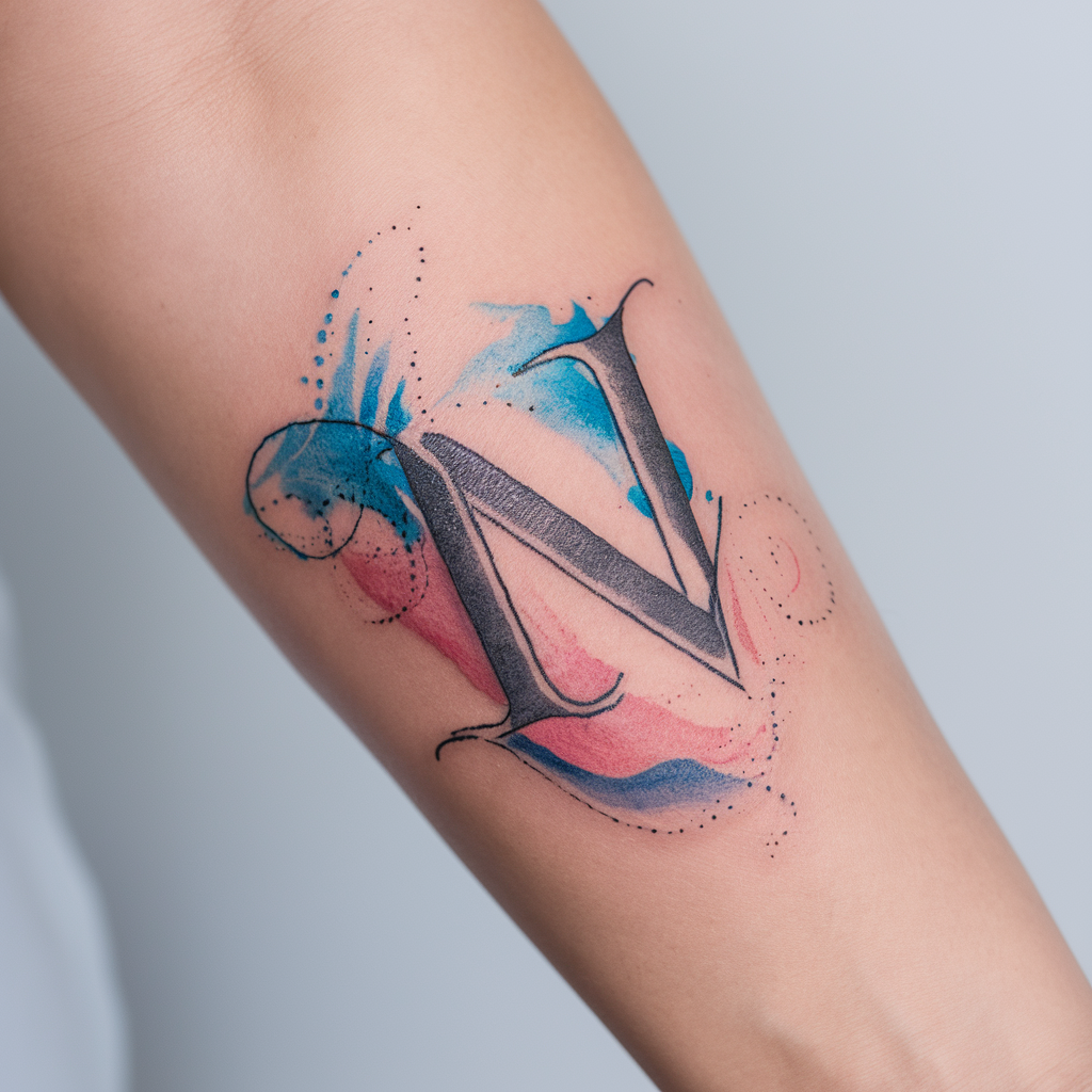 If you want your “N” to have an artistic flair, consider a watercolor tattoo. This design uses splashes of color in the background or even within the letter itself, giving it a dreamy, abstract vibe.