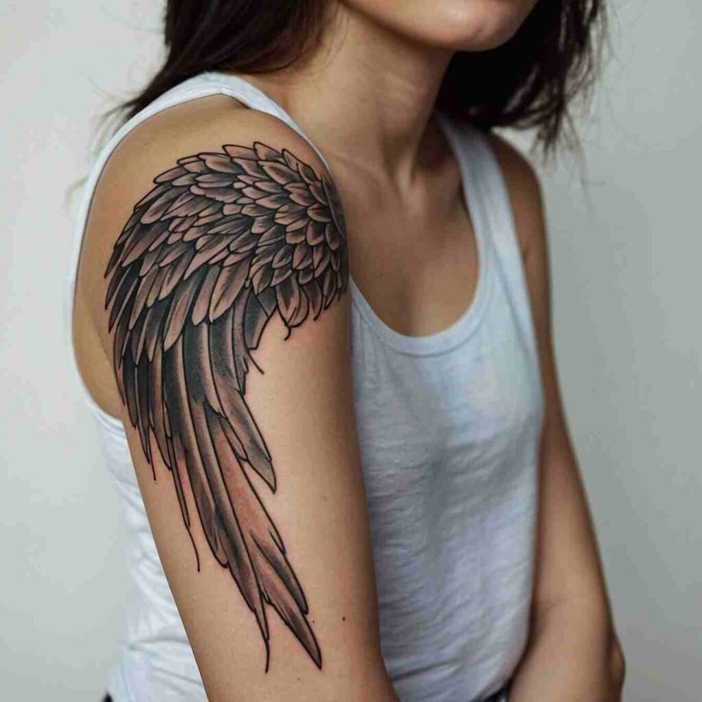 Angel wings represent protection and guidance. This tattoo is ideal for someone who feels a connection to their guardian angel or loved ones watching over them. It’s a graceful choice for those who seek to embody a sense of divine protection and guidance in their life.