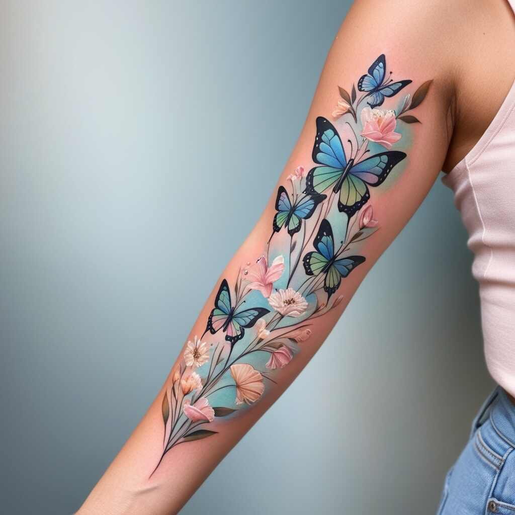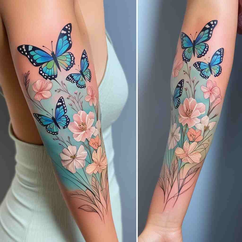 Butterflies and flowers symbolize transformation and beauty. This tattoo suits someone who has undergone significant personal growth and embraces change. It’s a lovely choice for those who appreciate the delicate beauty of nature and the process of becoming a better version of themselves.