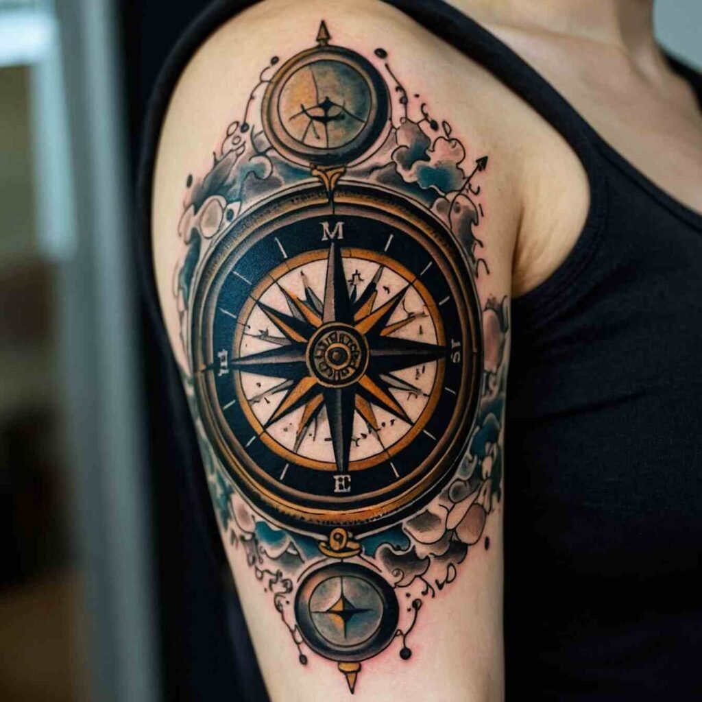 A compass and map represent direction and adventure. This tattoo is perfect for someone who loves exploring new places and discovering new paths. It’s an adventurous choice for those who appreciate the symbolism of navigation and the thrill of the journey.