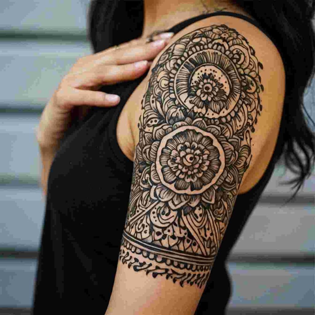 Henna-inspired designs symbolize beauty and tradition. This tattoo is ideal for someone who values cultural heritage and the beauty of traditional art forms. It’s a beautiful choice for those who appreciate the intricate patterns and the temporary yet impactful nature of henna.