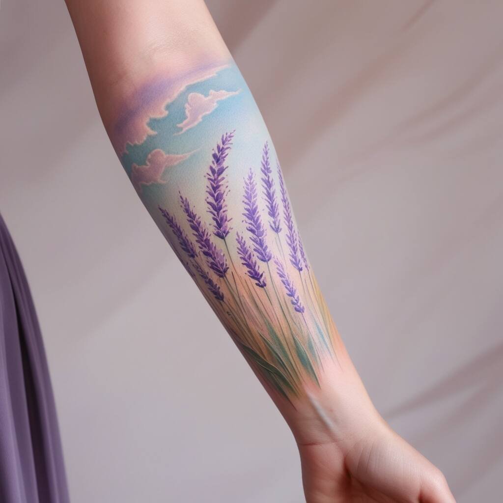 Lavender fields represent serenity and calm. This tattoo is perfect for someone who values peace and tranquility in their life. It’s a beautiful choice for those who find solace in nature and seek to embody a sense of calm and relaxation in their daily routine.