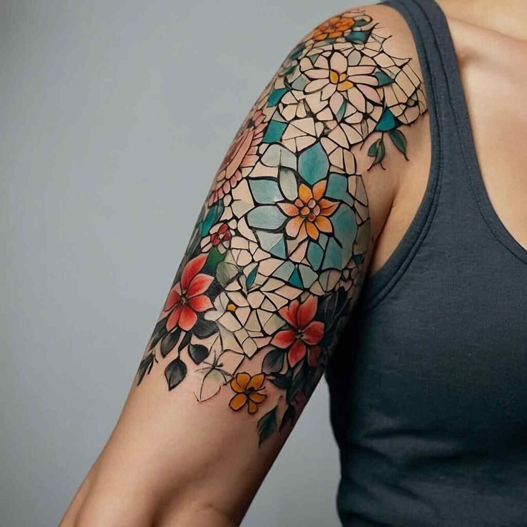 Mosaic patterns symbolize diversity and beauty. This tattoo is perfect for someone who values the rich variety of life and the beauty that comes from different pieces coming together. It’s a vibrant choice for those who appreciate the artistry and symbolism of mosaics.