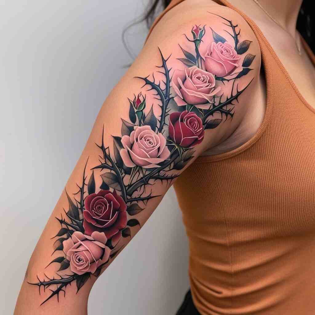 Roses and thorns represent love and resilience. This tattoo is ideal for someone who values both the beauty and challenges in life. It’s a great choice for those who have experienced love and loss but continue to find strength and beauty in their journey.