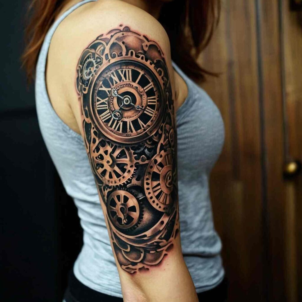 Steampunk clockwork symbolizes innovation and time. This tattoo is perfect for someone who loves the blend of technology and vintage aesthetics. It’s a unique choice for those who appreciate the intricate details of steampunk designs and the symbolism of time.