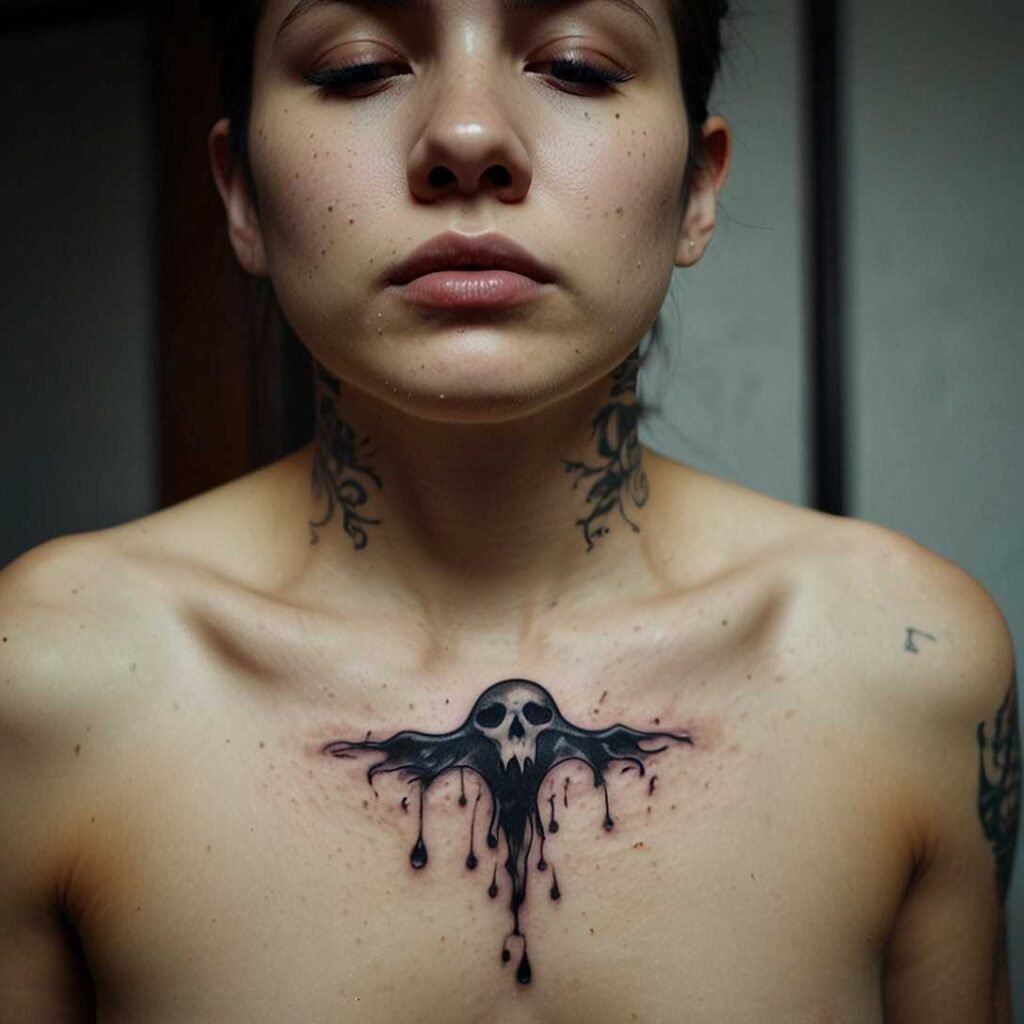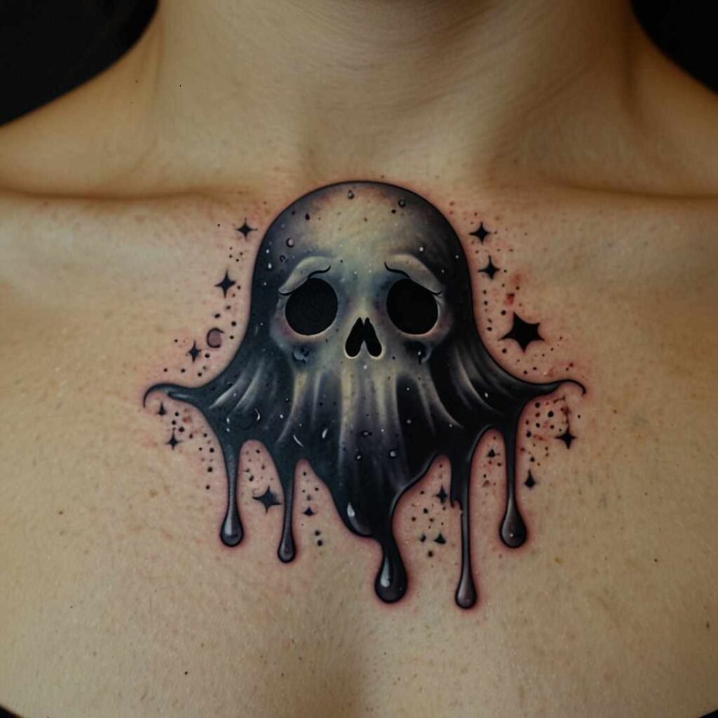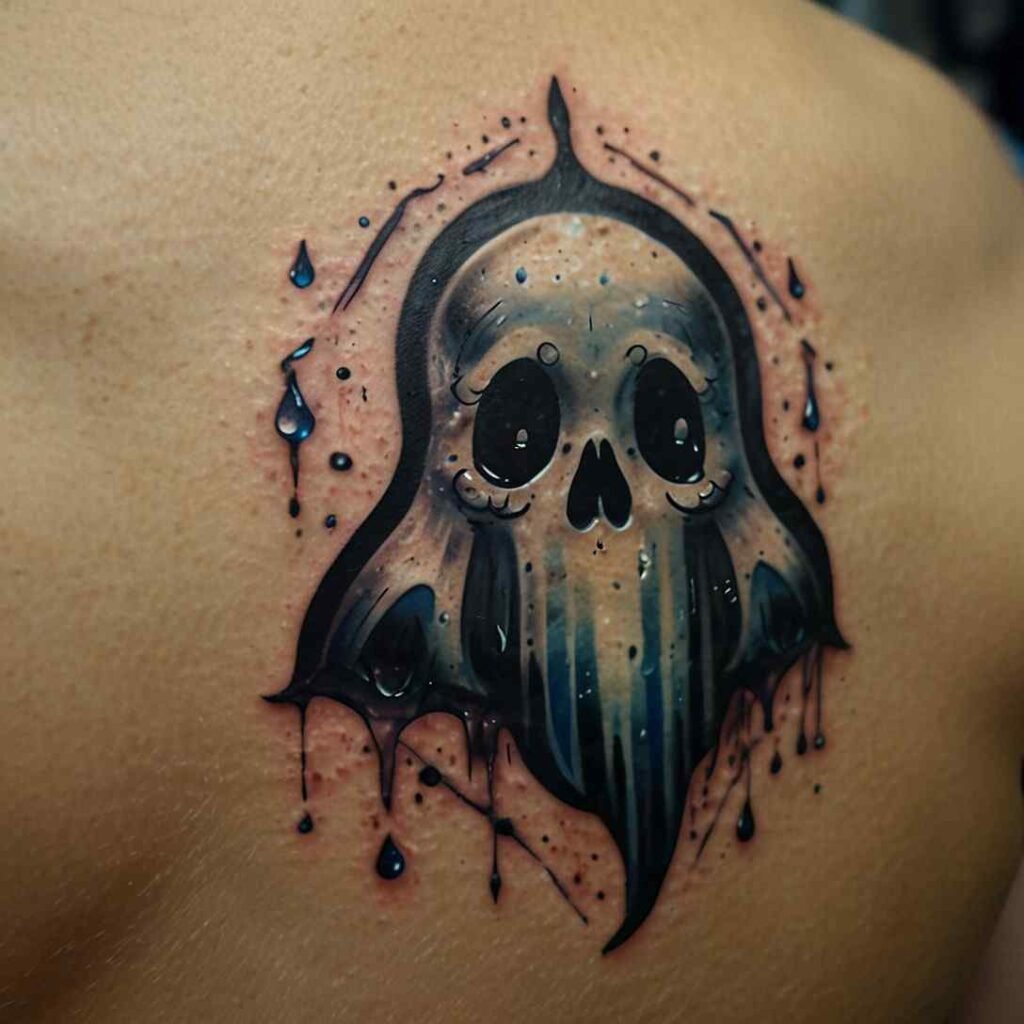 A crying ghost tattoo can symbolize grief, loss, or emotional healing. The small ghost, with tears streaming down, serves as a reminder of past struggles and the strength gained from them. It’s an emotional yet simple design, perfect for those who want to acknowledge their hardships while moving forward. Place this tattoo on your chest, shoulder, or forearm for a meaningful and personal design.