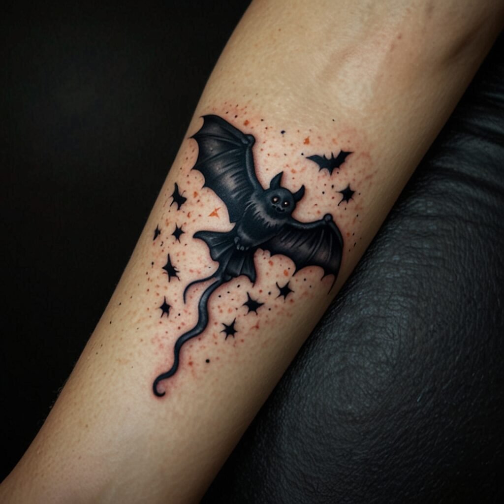 This design features a small ghost surrounded by bats. It’s a perfect tattoo for lovers of Halloween or spooky aesthetics. The ghost and bats together symbolize fear and the unknown, but in a fun, approachable way. The design fits well on the upper arm or thigh, giving it enough space to be detailed while still staying mini. It’s an excellent choice for anyone who enjoys a more gothic style.