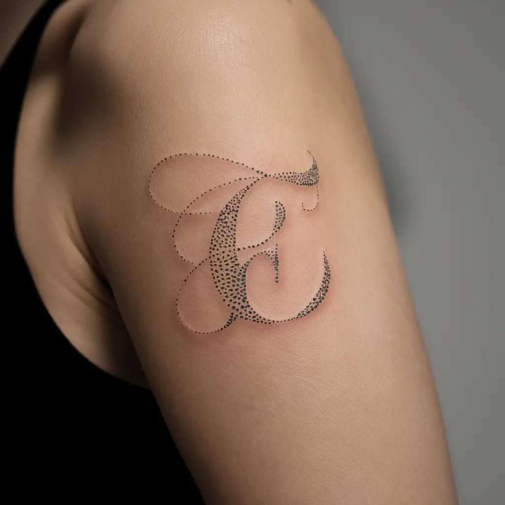 Meaning: A dotwork “E” tattoo is all about precision, focus, and attention to detail. It can represent a person who appreciates the finer things in life or someone who values patience and hard work.