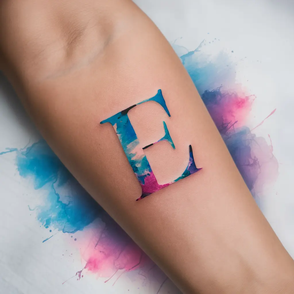 Why I Love It: Watercolor tattoos are vibrant, expressive, and full of life. They turn your letter “E” into a canvas, showcasing your artistic side while giving the tattoo a sense of movement and energy.