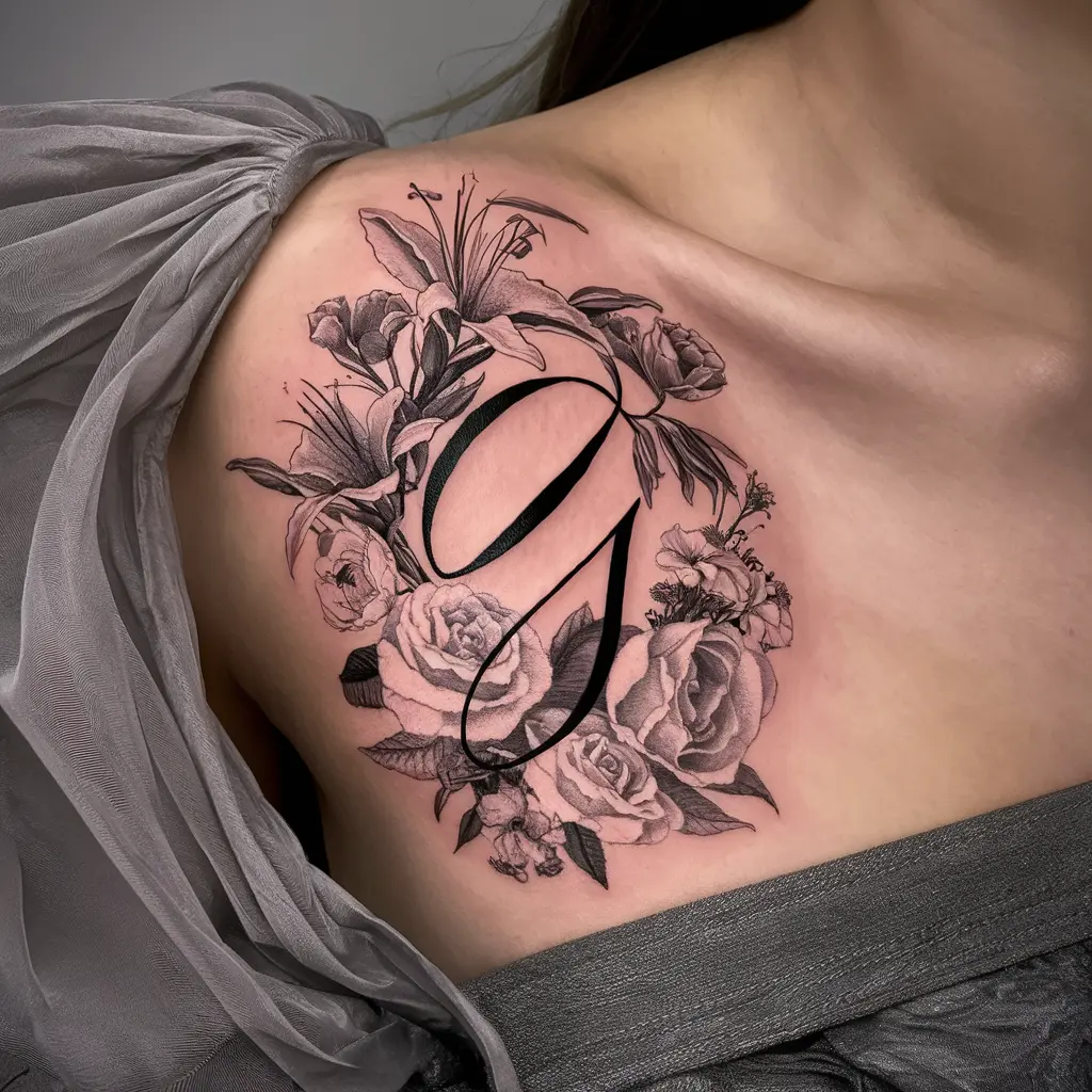 Tattoo Meaning: Flowers represent growth, beauty, and change. The “G” could stand for a person’s name or a meaningful word intertwined with nature’s symbolism.