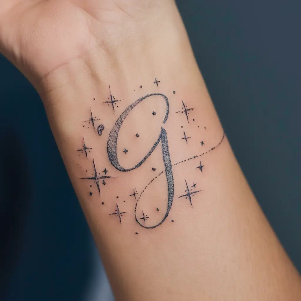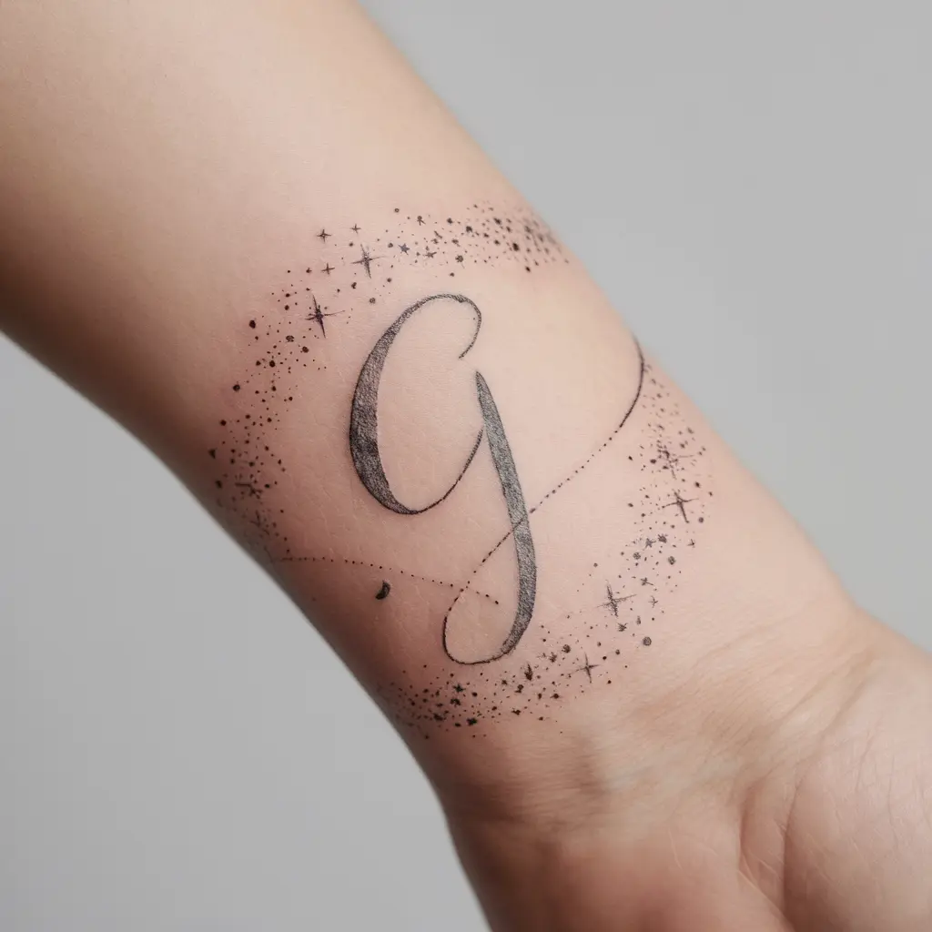 G in Script with Stars Tattoo