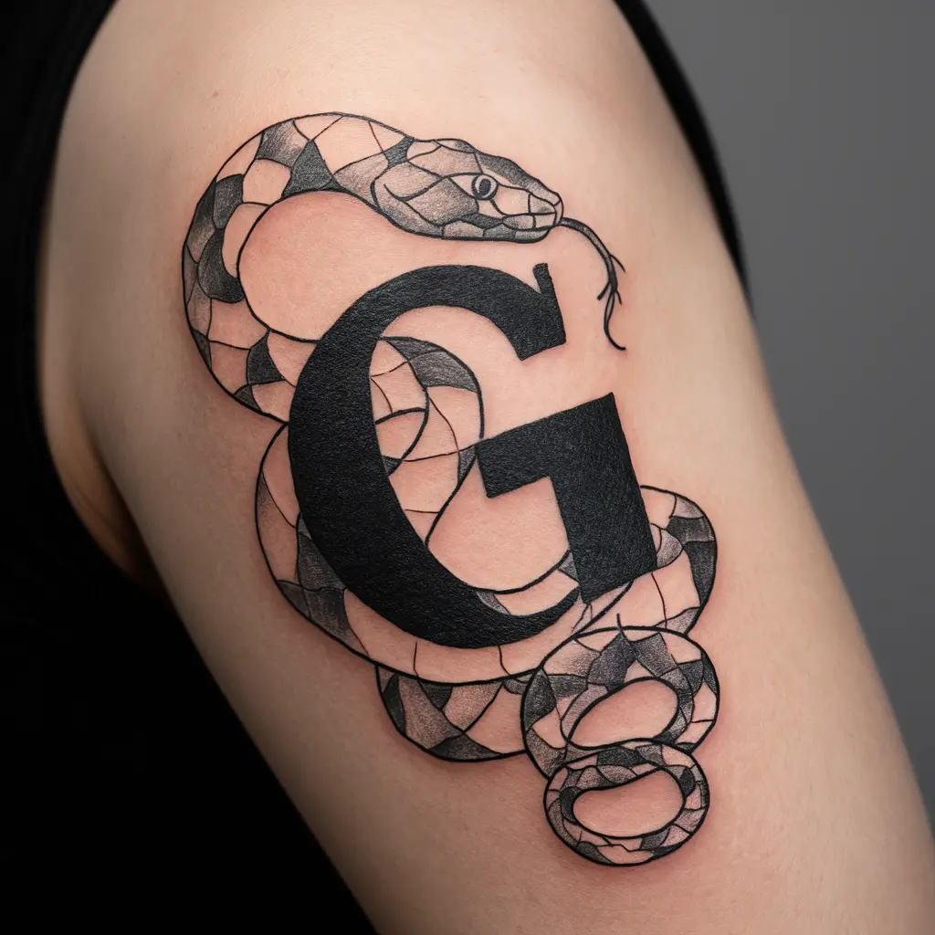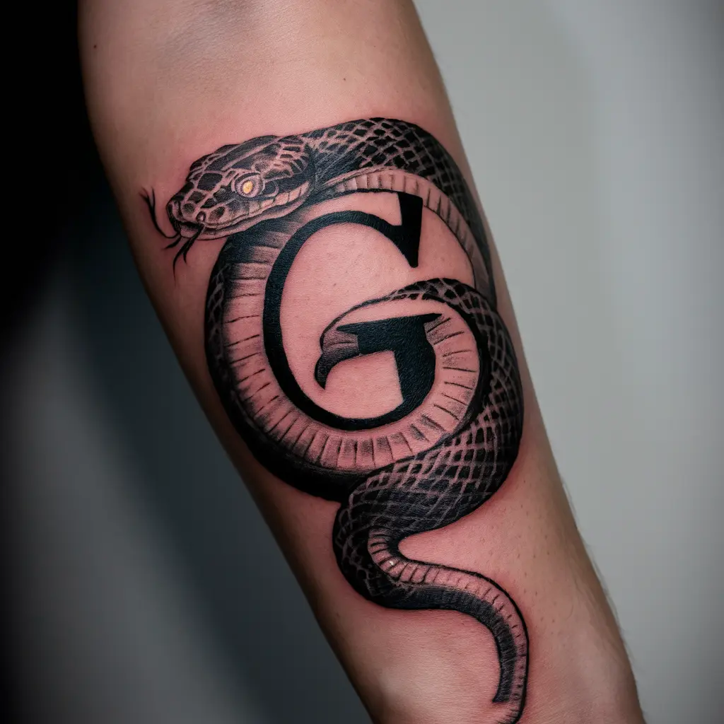 Why I Love It: The contrast between the sleek “G” and the dynamic movement of the snake gives this tattoo a powerful vibe.
