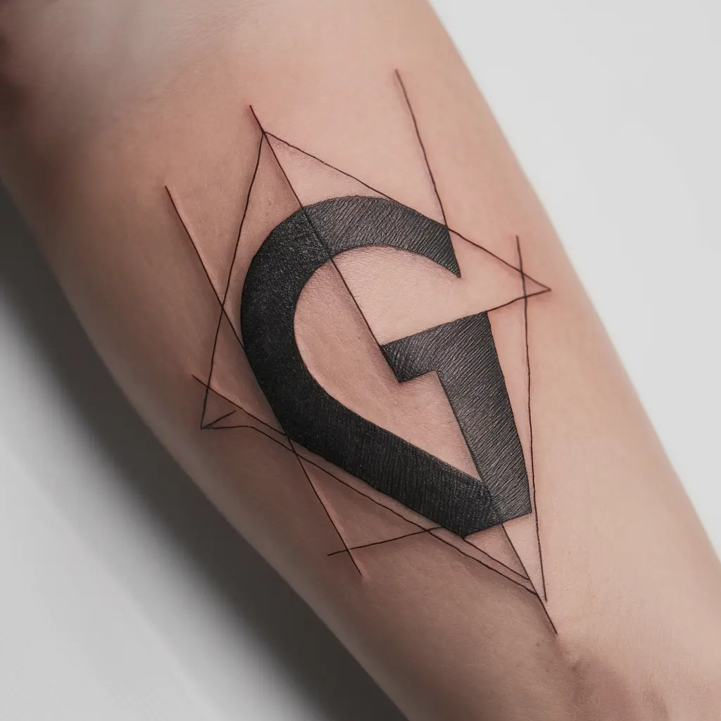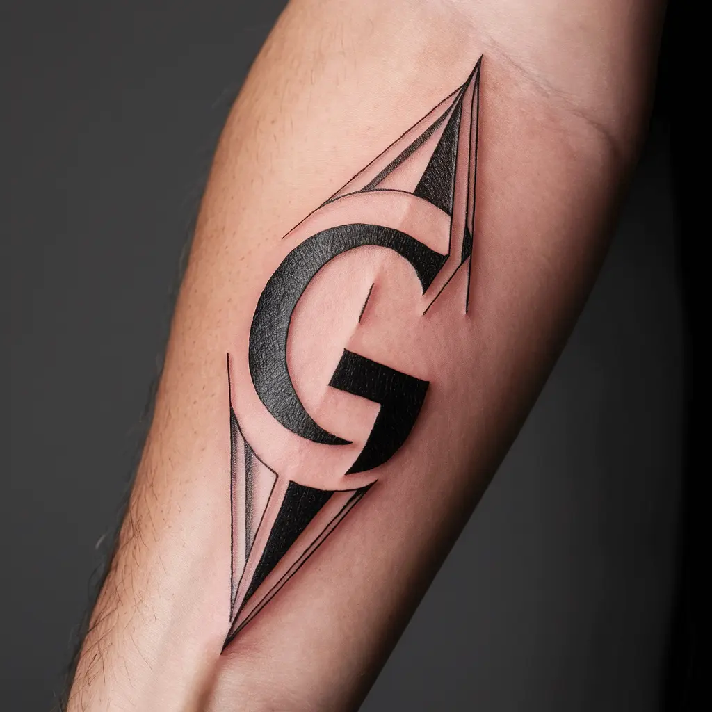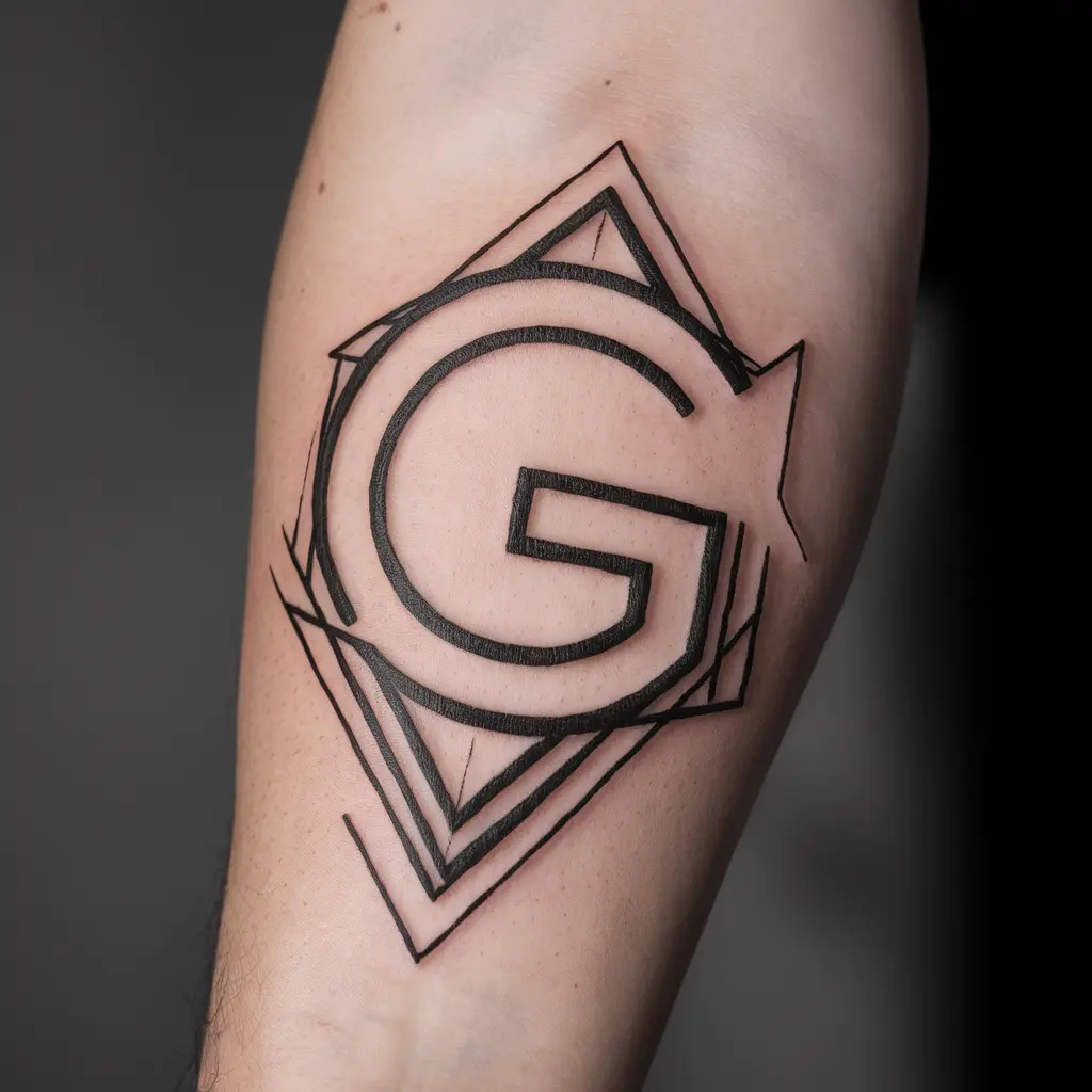 Personalized Description: This tattoo features a sharp, clean “G” made of geometric shapes and lines. I love the way it blends simplicity with modern style.