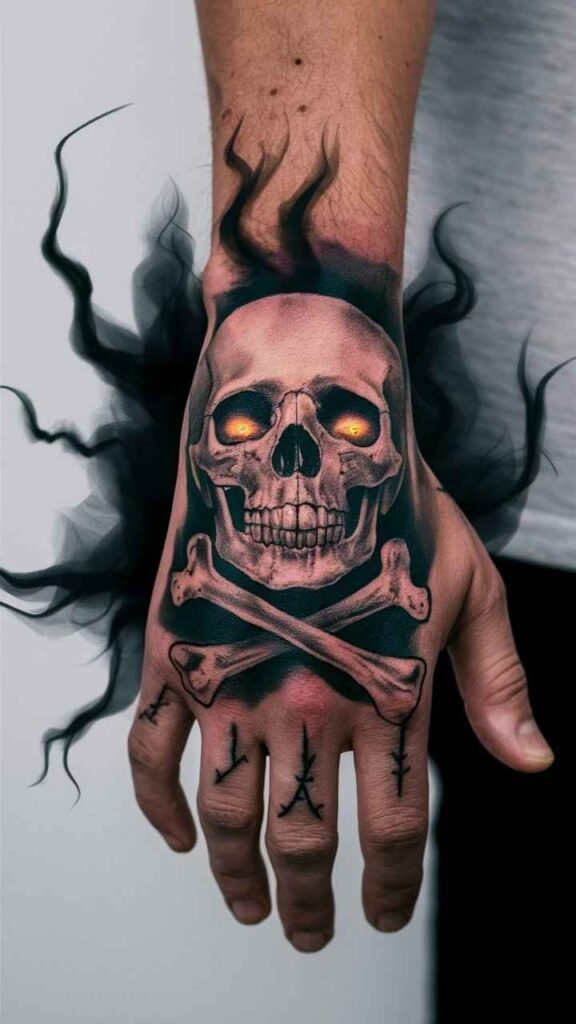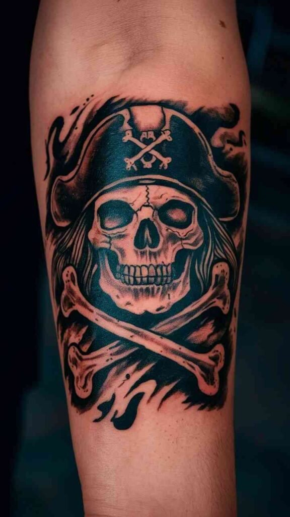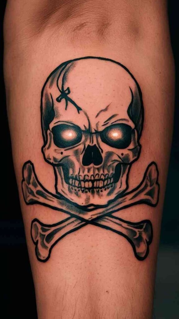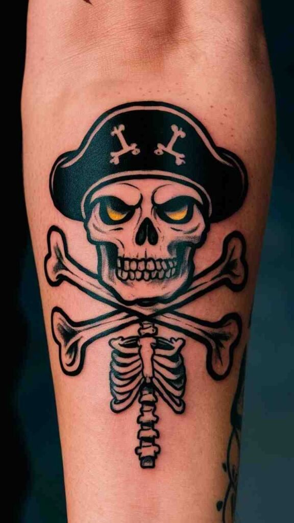 The skull and crossbones tattoo is a classic pirate symbol, with a Halloween makeover. Add eerie elements like glowing eyes or a ghostly aura for extra spookiness. It’s a bold, striking design that captures the adventurous spirit of Halloween. Perfect for those who love pirate lore with a creepy twist. The design is simple but effective, making it a timeless choice.