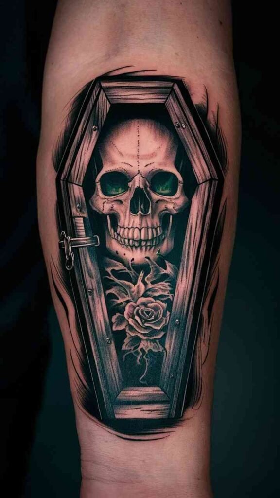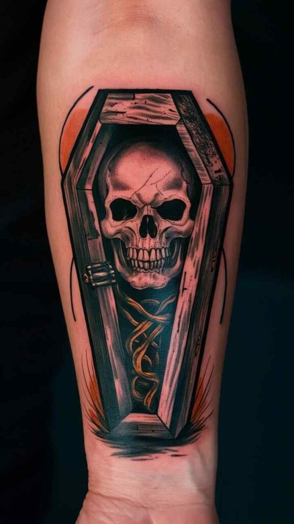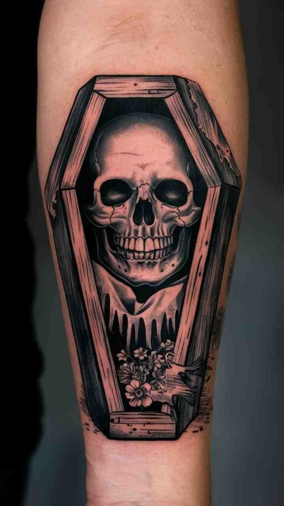 Skull with Coffin Tattoo