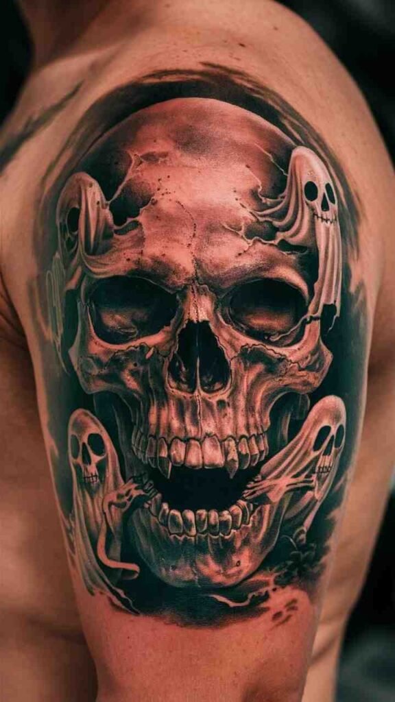 Skull with Ghosts Tattoo