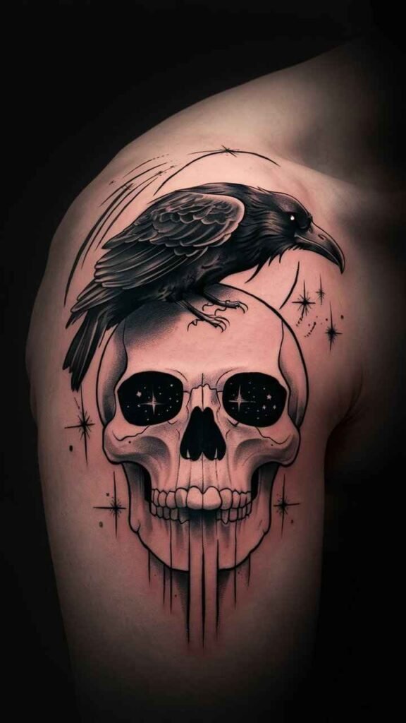 Skull with Raven Tattoo