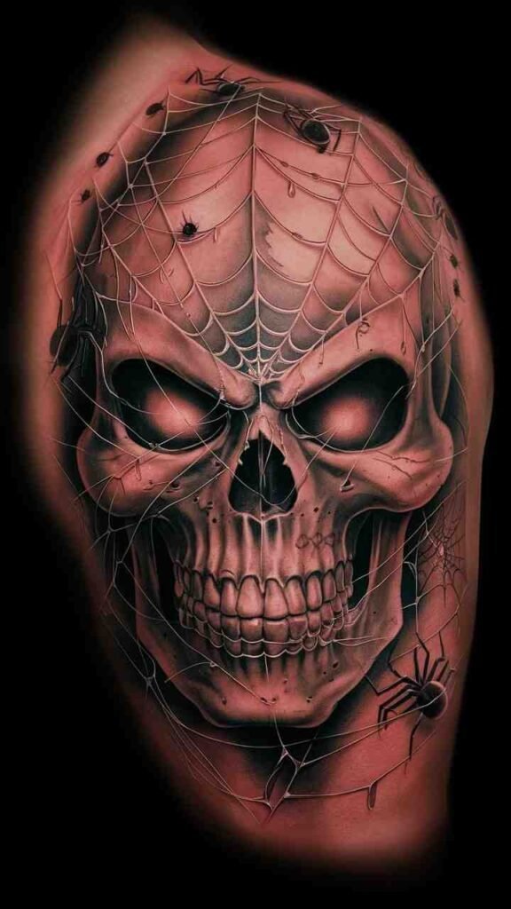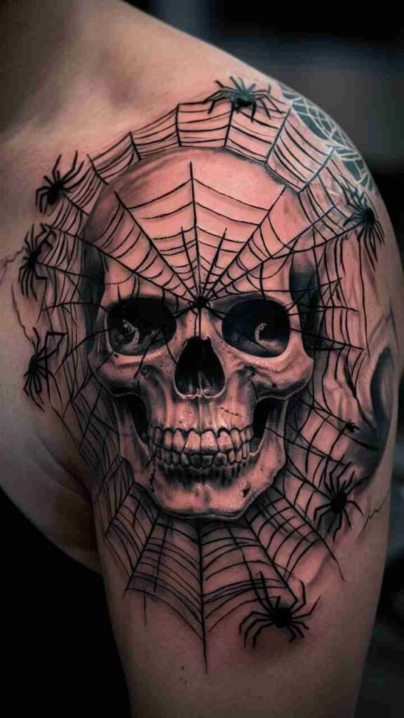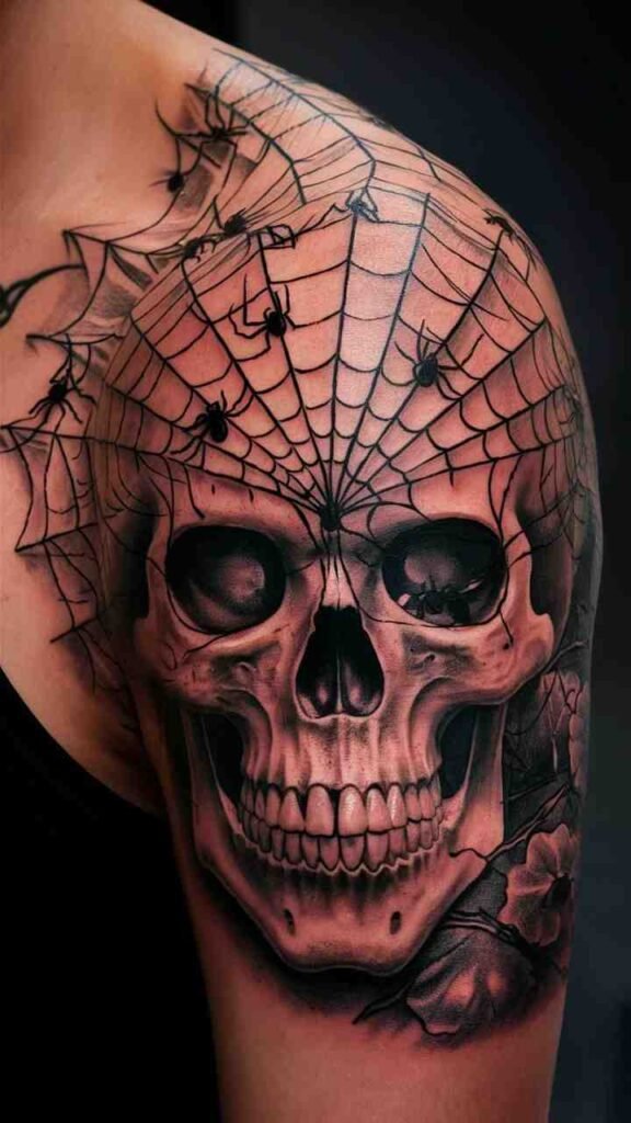 Skull with Spider Webs Tattoo