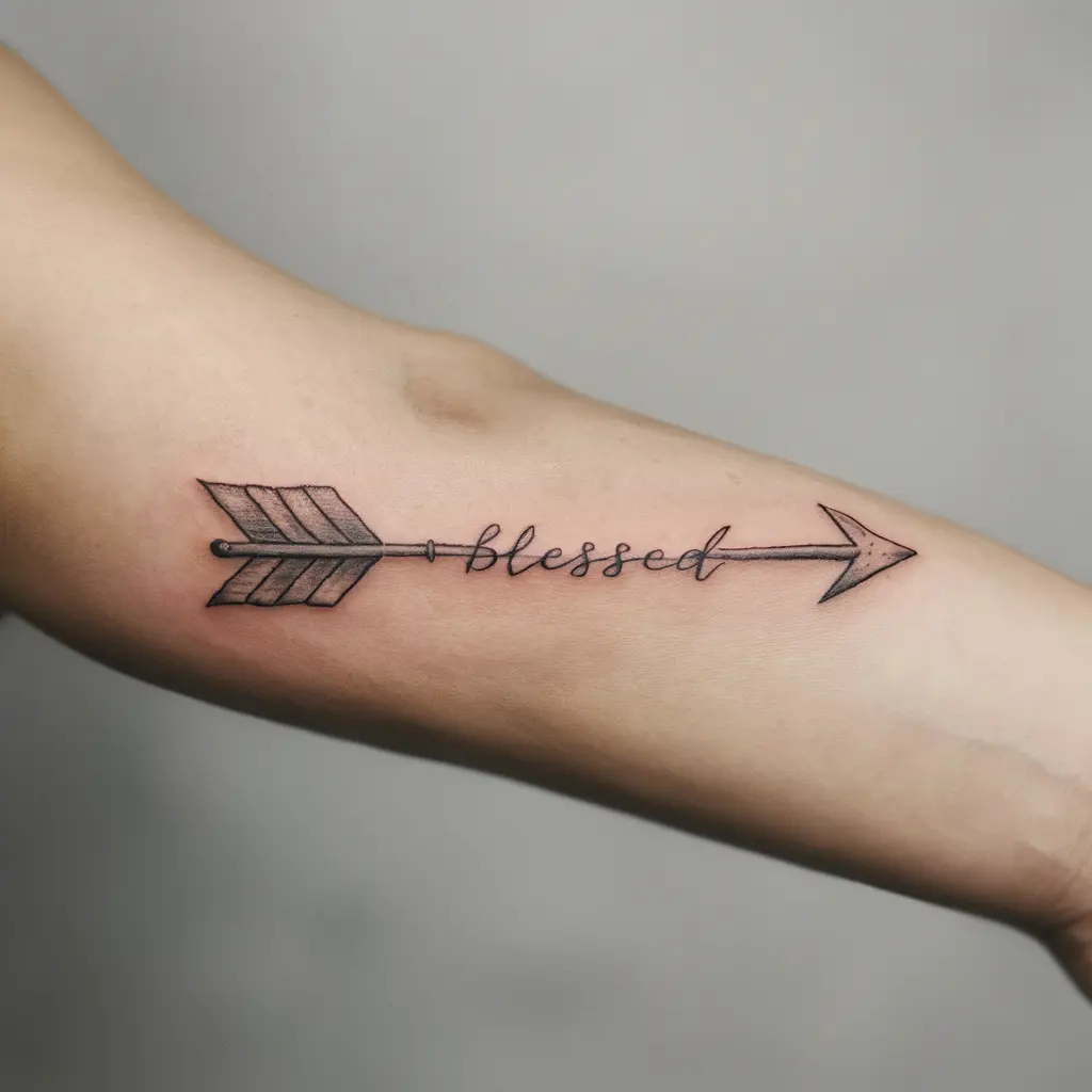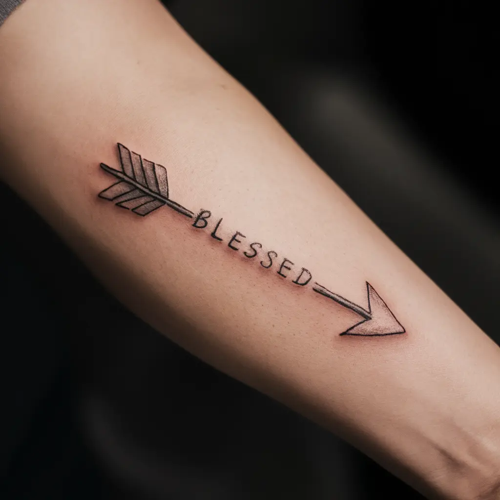 An arrow with the word “Blessed” incorporated into its design symbolizes moving forward with purpose.