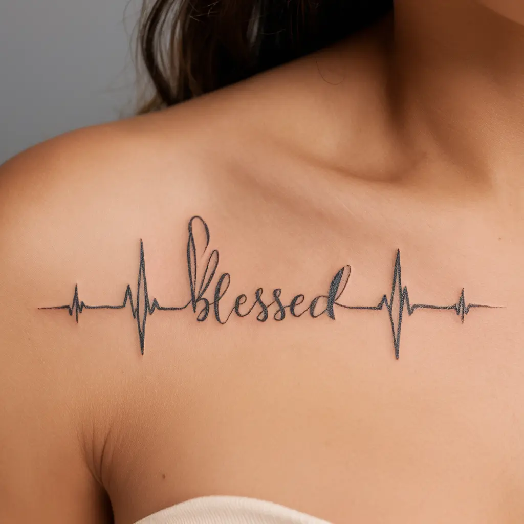 Picture a heartbeat line (EKG) that flows into the word “Blessed.” It’s a beautiful way to honor the life you’ve been given.