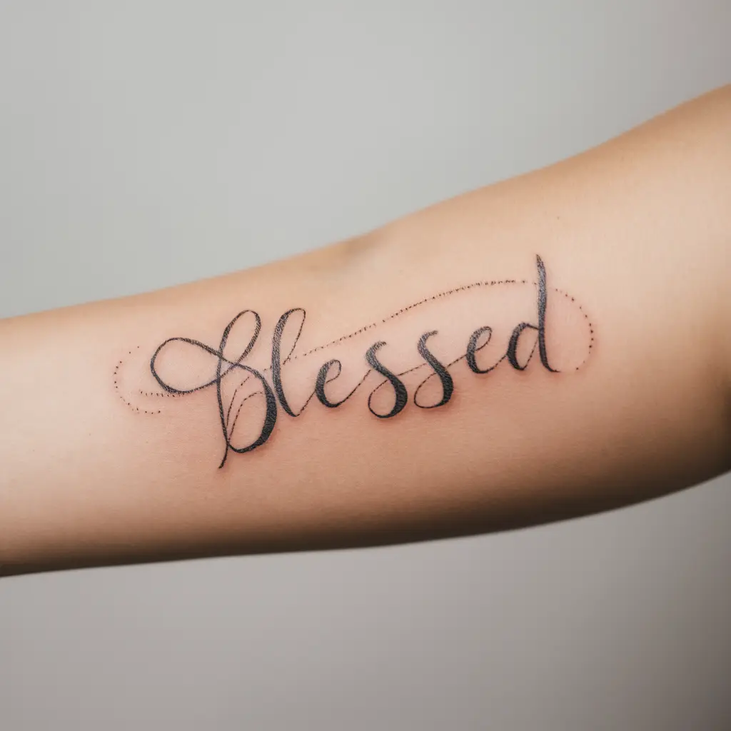 A “Blessed” tattoo is a beautiful way to express gratitude, faith, and appreciation for the blessings in your life.