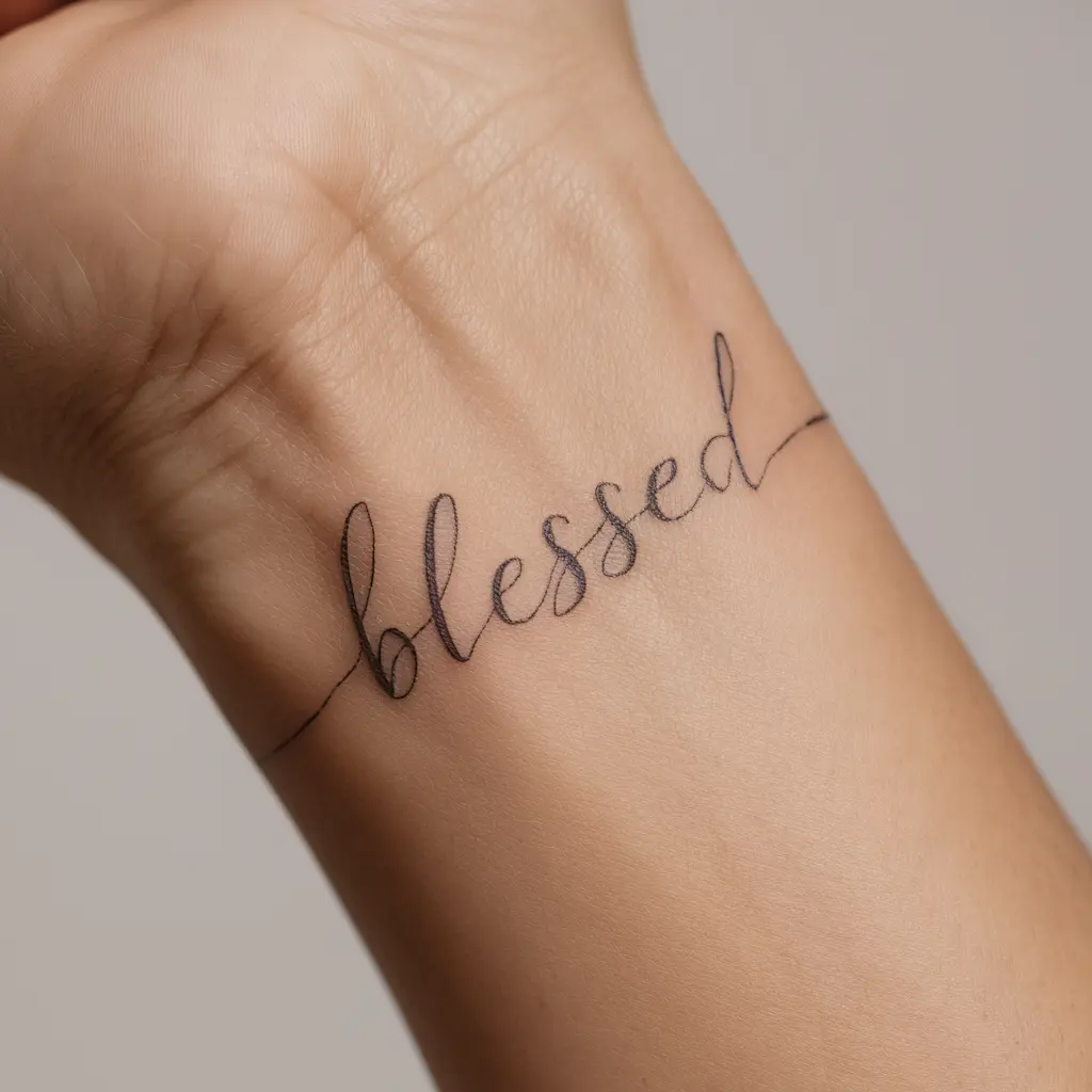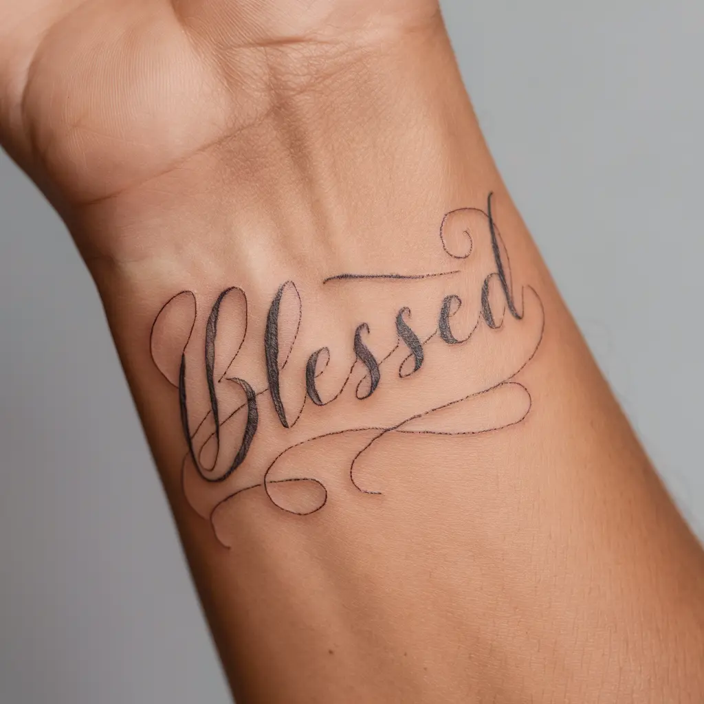 Sometimes, simplicity speaks the loudest. A “Blessed” tattoo in a delicate cursive font is timeless and elegant. I picture it on my wrist, a place I can glance at often.