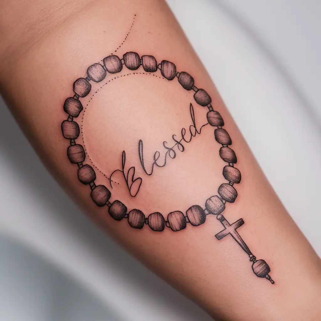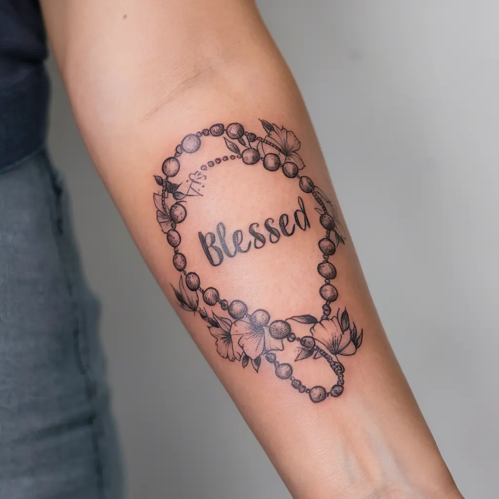 If you’re spiritual, a “Blessed” tattoo intertwined with rosary beads is a stunning choice. It’s perfect for anyone who finds strength in prayer.