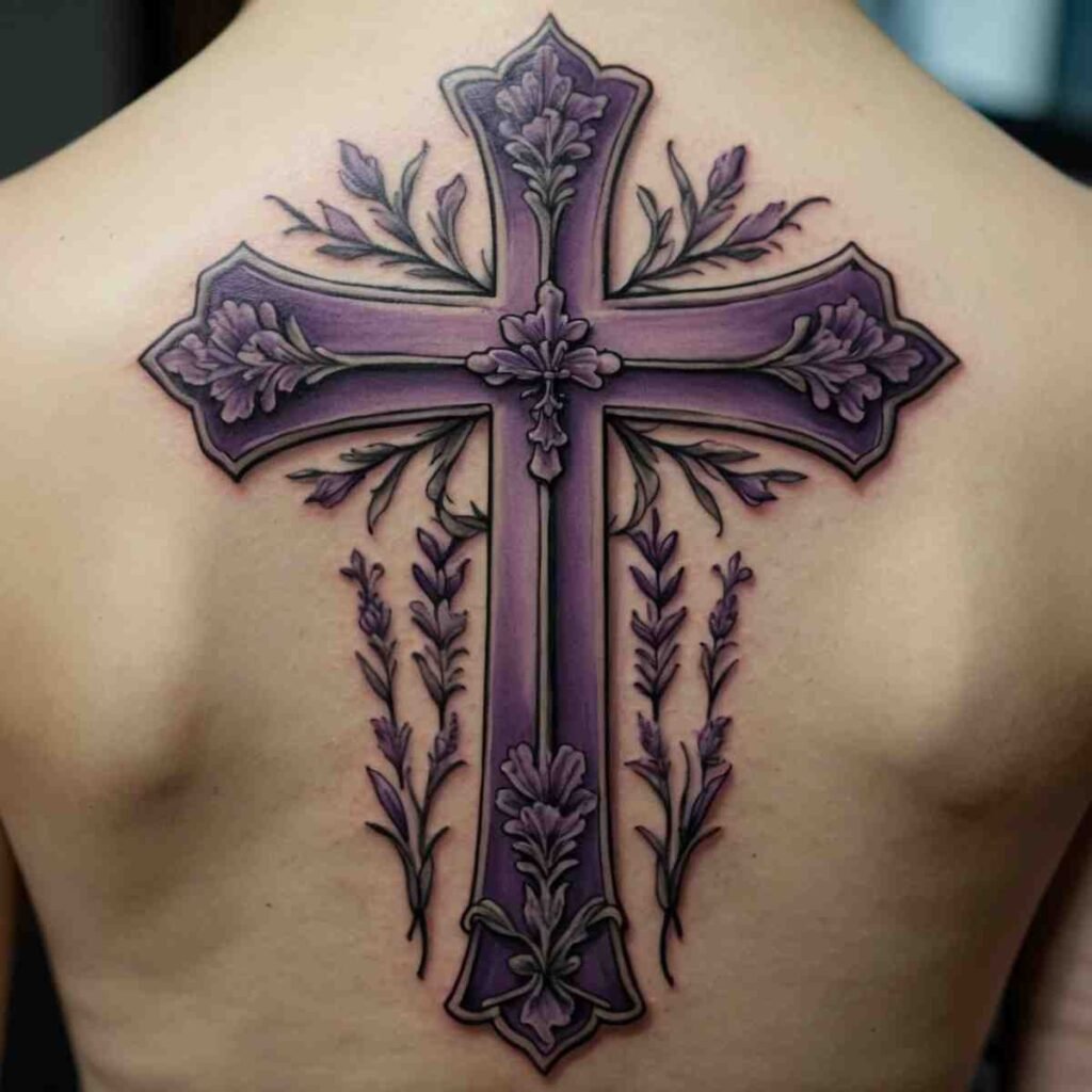 Lavender is known for its calming properties and symbolizes serenity. A cross intertwined with lavender sprigs can represent peaceful faith and inner calm. This tattoo is perfect for those who value spiritual peace and tranquility.