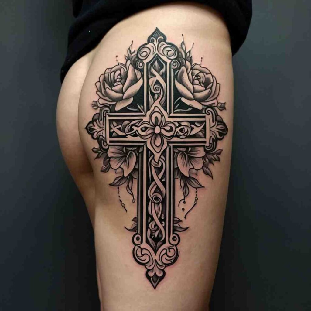 Girly floral cross tattoos offer a unique blend of faith and femininity. Combining delicate flowers with the strong symbol of the cross creates a design that feels both personal and beautiful. These tattoos are perfect for women who want to express their beliefs while also embracing their love for nature and beauty. The soft floral elements add a graceful, artistic touch to the cross, making it stand out with elegance.