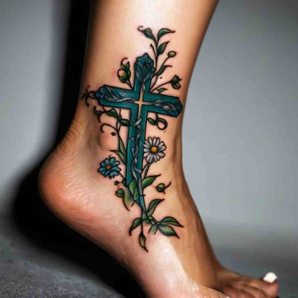 Wildflowers symbolize freedom and resilience. A cross adorned with wildflowers can represent unwavering faith even in tough times. This is a great tattoo for someone who feels connected to nature and wants to reflect their strength and faith.
