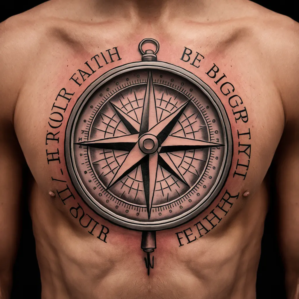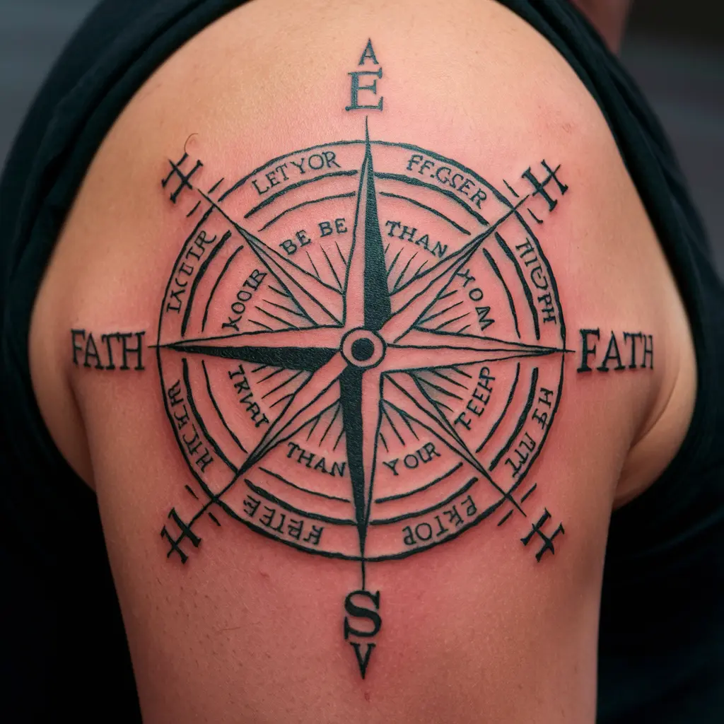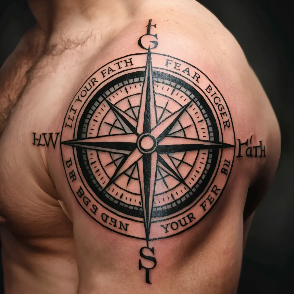 Tattoo Meaning: The compass symbolizes guidance and direction, always pointing you toward faith over fear.