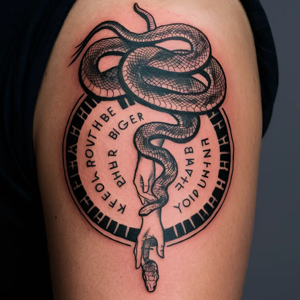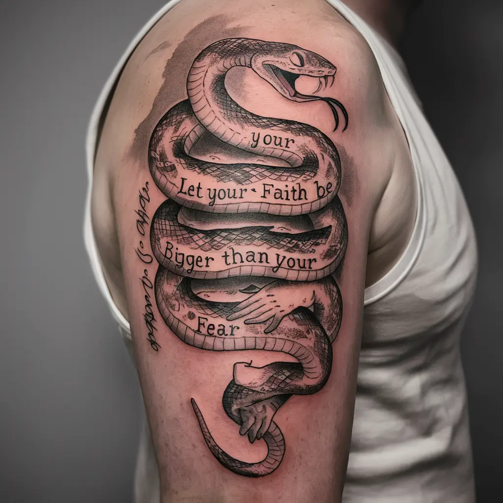 Tattoo Meaning: The snake shows how fear can feel dangerous, but the hand of faith holds it under control. It’s a reminder that faith is stronger than fear.