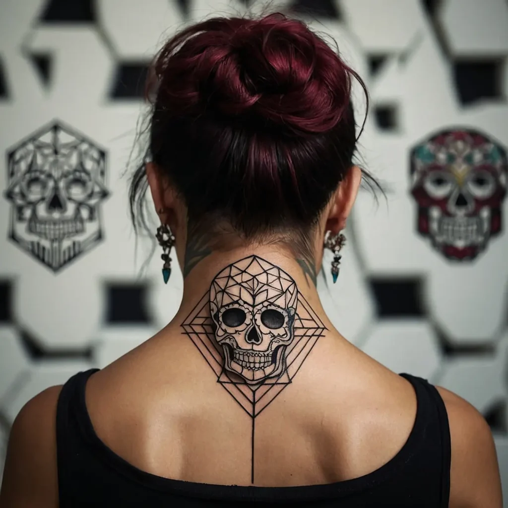 For a more modern look, consider a geometric sugar skull tattoo. The blend of sharp lines and symmetry gives the skull a unique, contemporary feel while still retaining its traditional meaning of honoring the dead. This design looks stunning on the forearm or back of the neck.