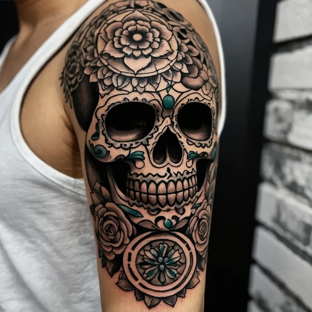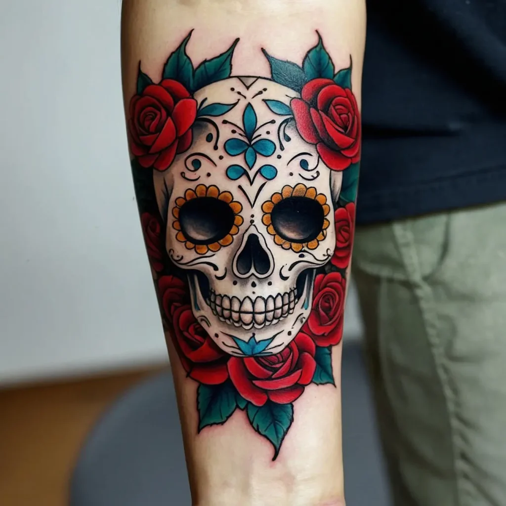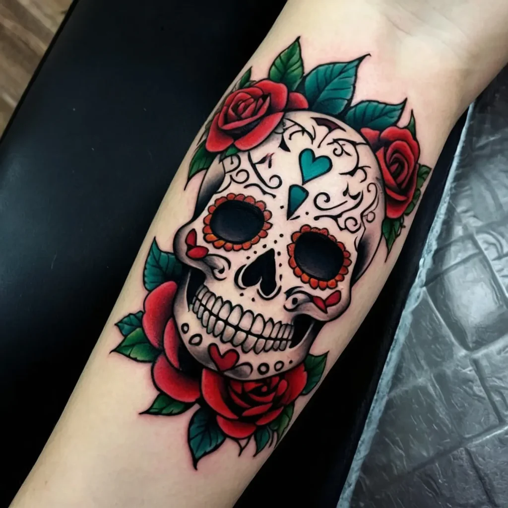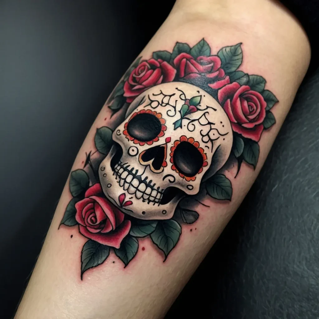 Roses are often associated with love, beauty, and passion, making them a perfect addition to a sugar skull tattoo. A small sugar skull with roses signifies the beauty of life and the inevitability of death. This classic design works well on the forearm or shoulder.