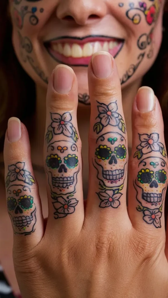 A small sugar skull tattoo can serve as a tribute, symbolizing remembrance, resilience, and the beauty of life and death’s cycle. These tattoos often use vibrant colors, floral details, or personal symbols, each adding layers of meaning unique to the wearer.
