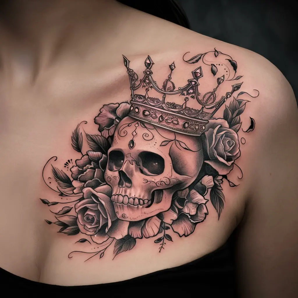 A small sugar skull tattoo with a crown can represent personal strength, royalty, or respect for the deceased. This design can be intricate or simple, depending on your preference, and works well on the wrist or collarbone.