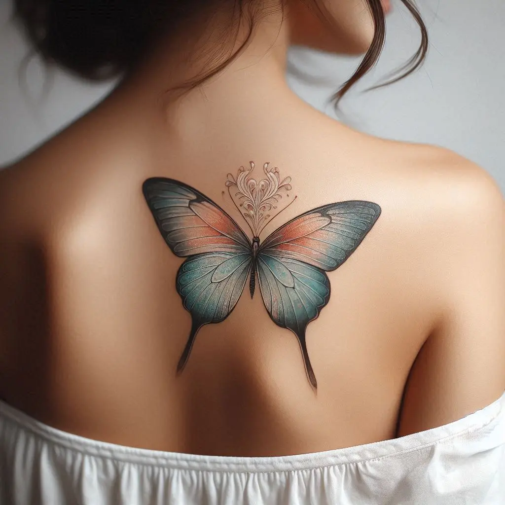 1. Butterfly Upper Back Tattoo