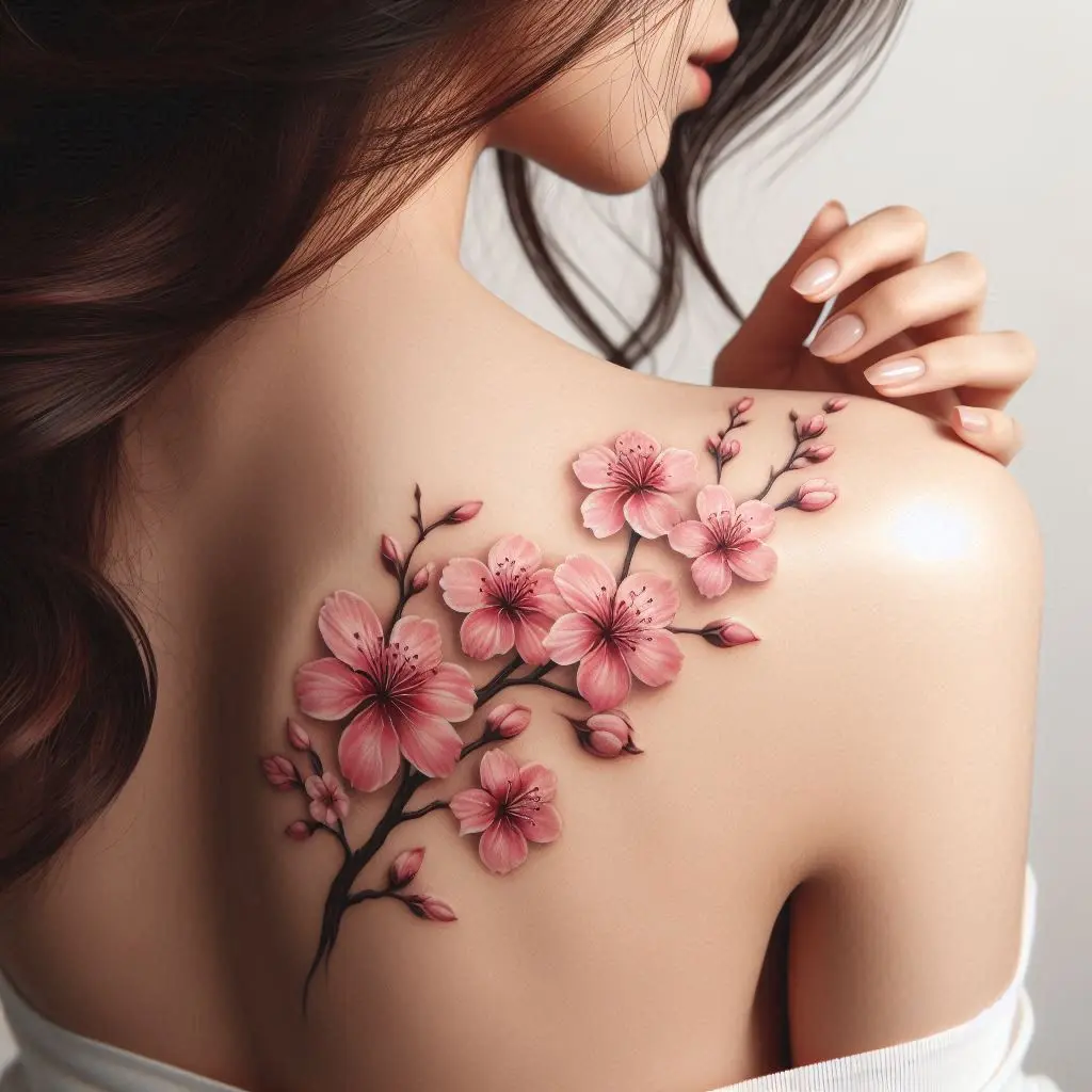 Soft, delicate cherry blossoms are perfect for an upper back tattoo, adding a touch of beauty and grace. This design is especially popular for those who want something feminine and elegant.