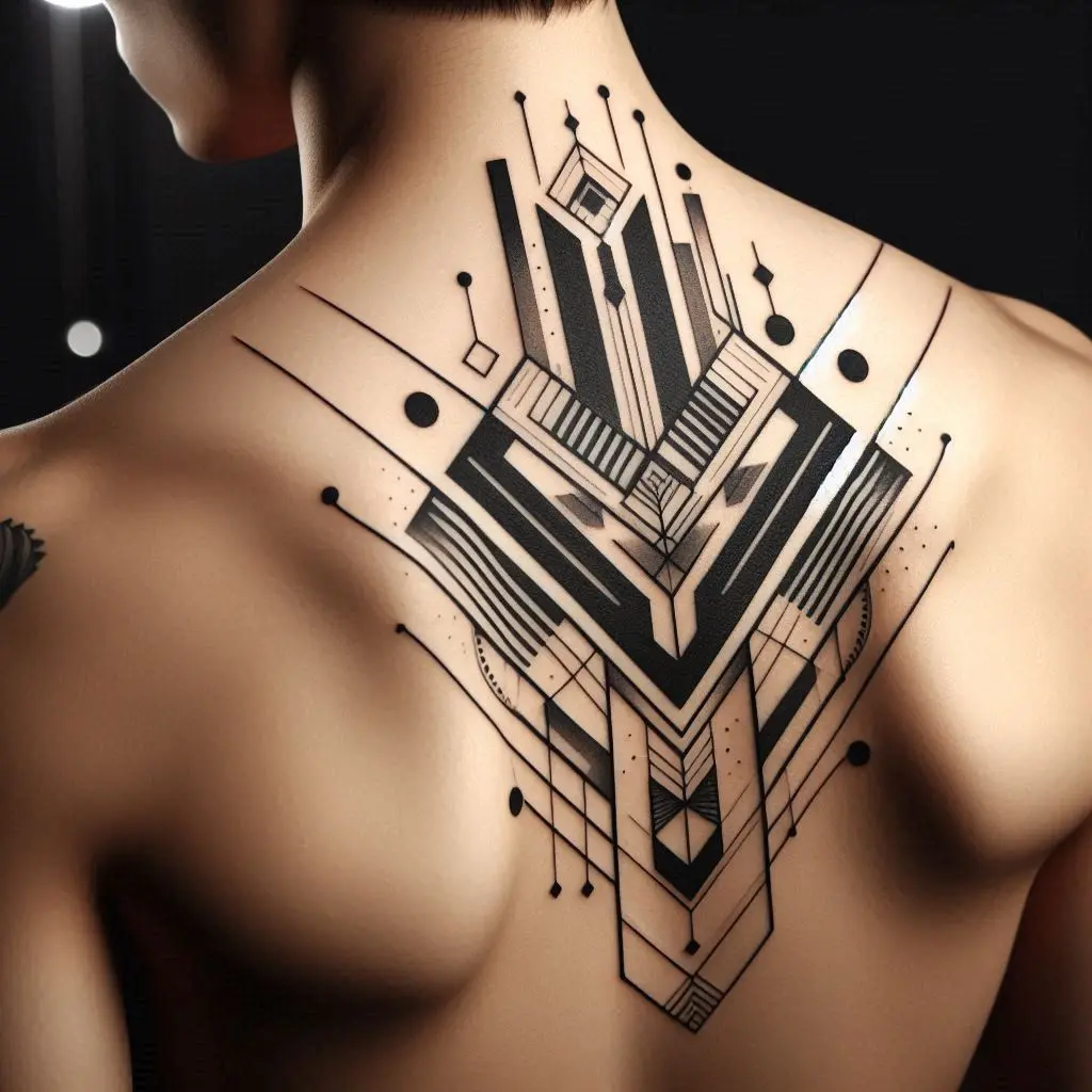 For those who like to make a bold statement, a cool, edgy tattoo on the upper back is a great option. This could be a mix of geometric patterns, abstract designs, or even something more unconventional that shows off your personality and style.