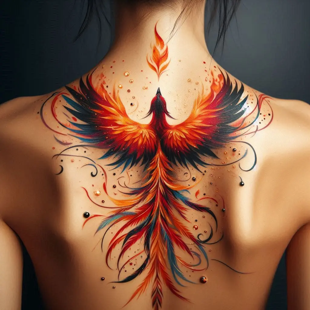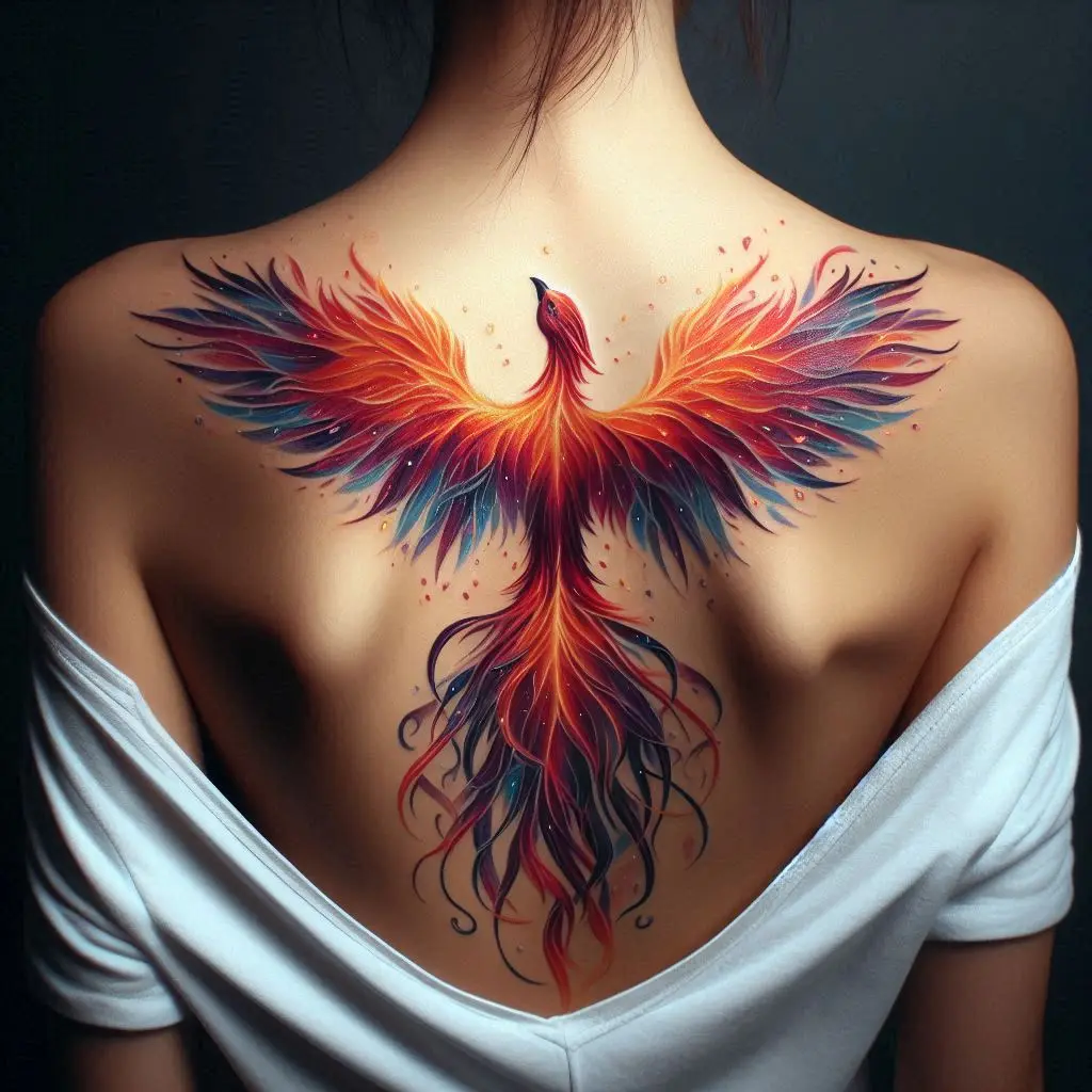 The phoenix is a symbol of rebirth, transformation, and resilience. A phoenix tattoo on the upper back represents the ability to rise from the ashes and overcome life’s challenges.