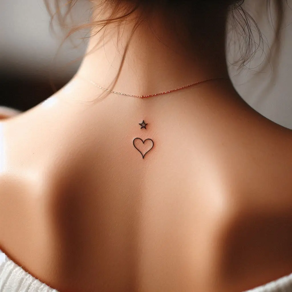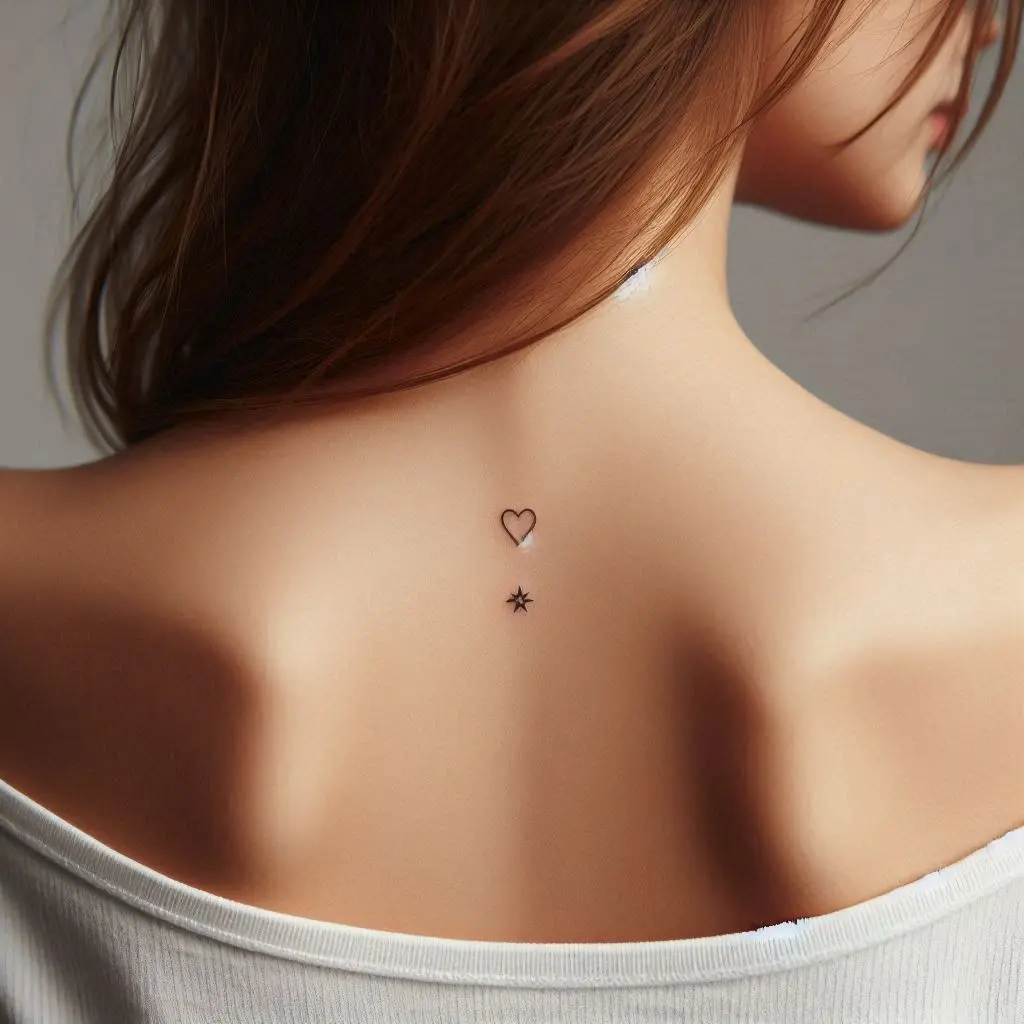 If you’re not sure about going big, a small upper back tattoo could be the perfect option. Tiny symbols, such as hearts, stars, or simple words, placed just below the neck or at the top of the back can look sleek and elegant.