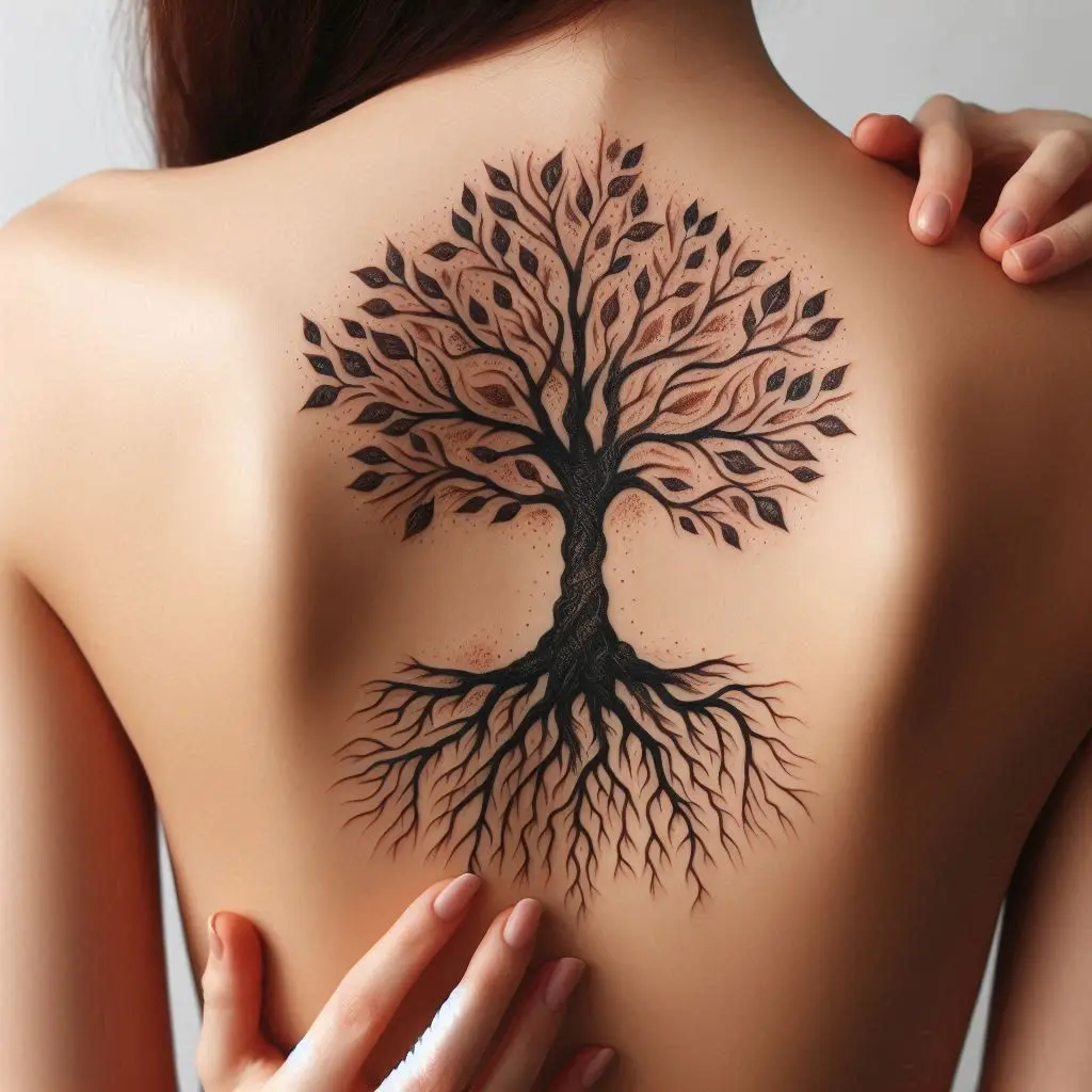 The tree of life is a timeless symbol of growth, strength, and interconnectedness. A detailed tree with roots and branches across the upper back can represent the deep connection between life, earth, and the universe.
