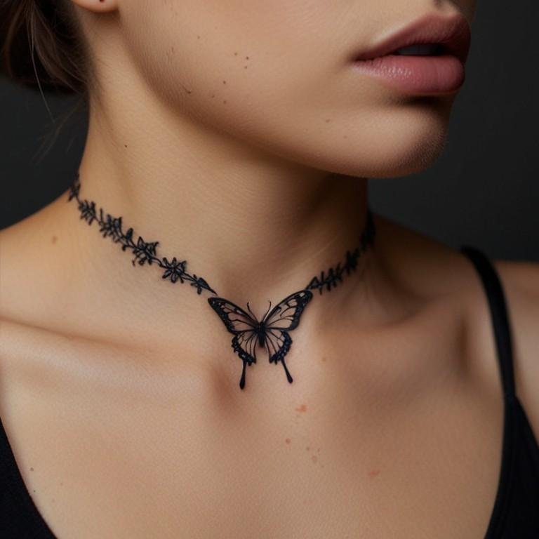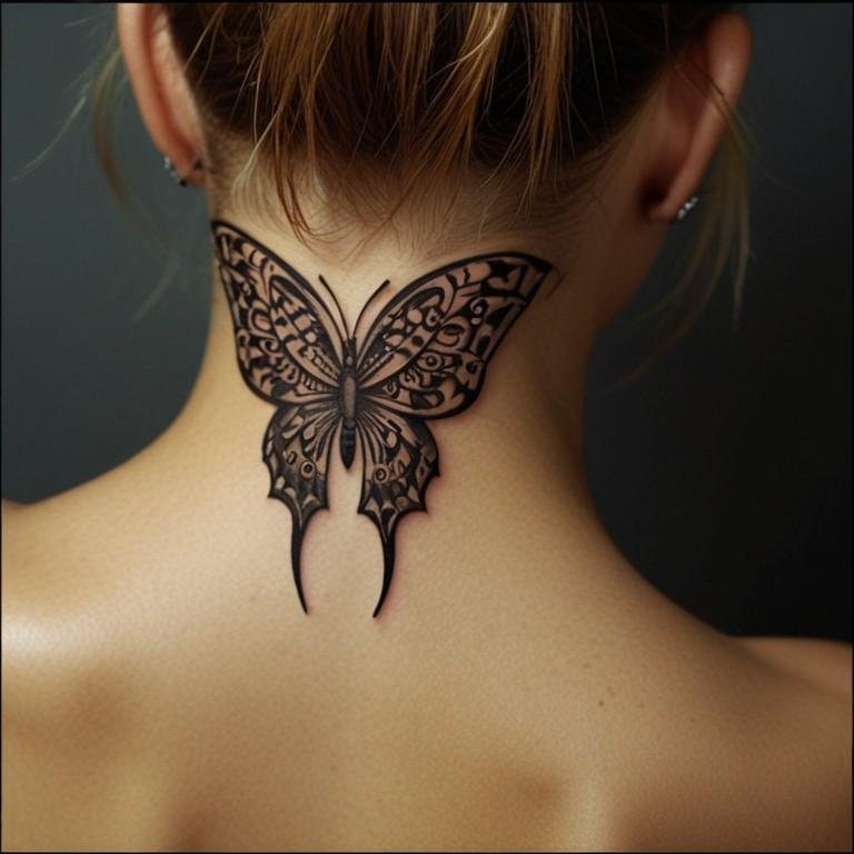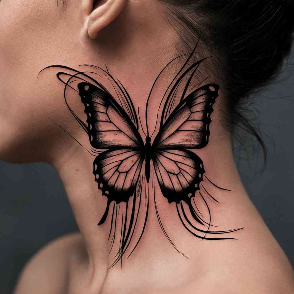 Tribal tattoos are bold and striking. A tribal butterfly design can symbolize strength and courage. This tattoo often features intricate patterns that can stand out beautifully on the neck.