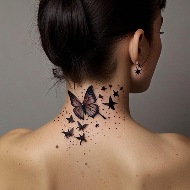 A butterfly adorned with stars symbolizes dreams and aspirations. This tattoo can remind you to follow your dreams. The stars add a touch of magic and wonder to the design.