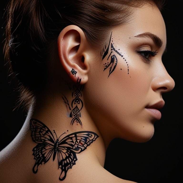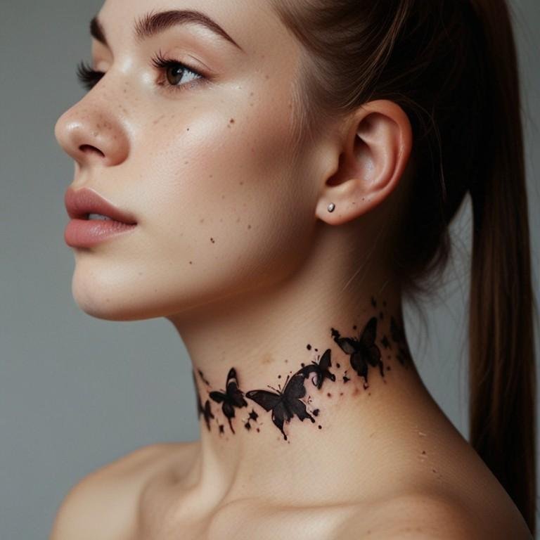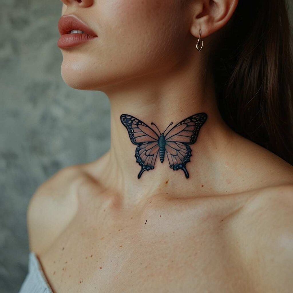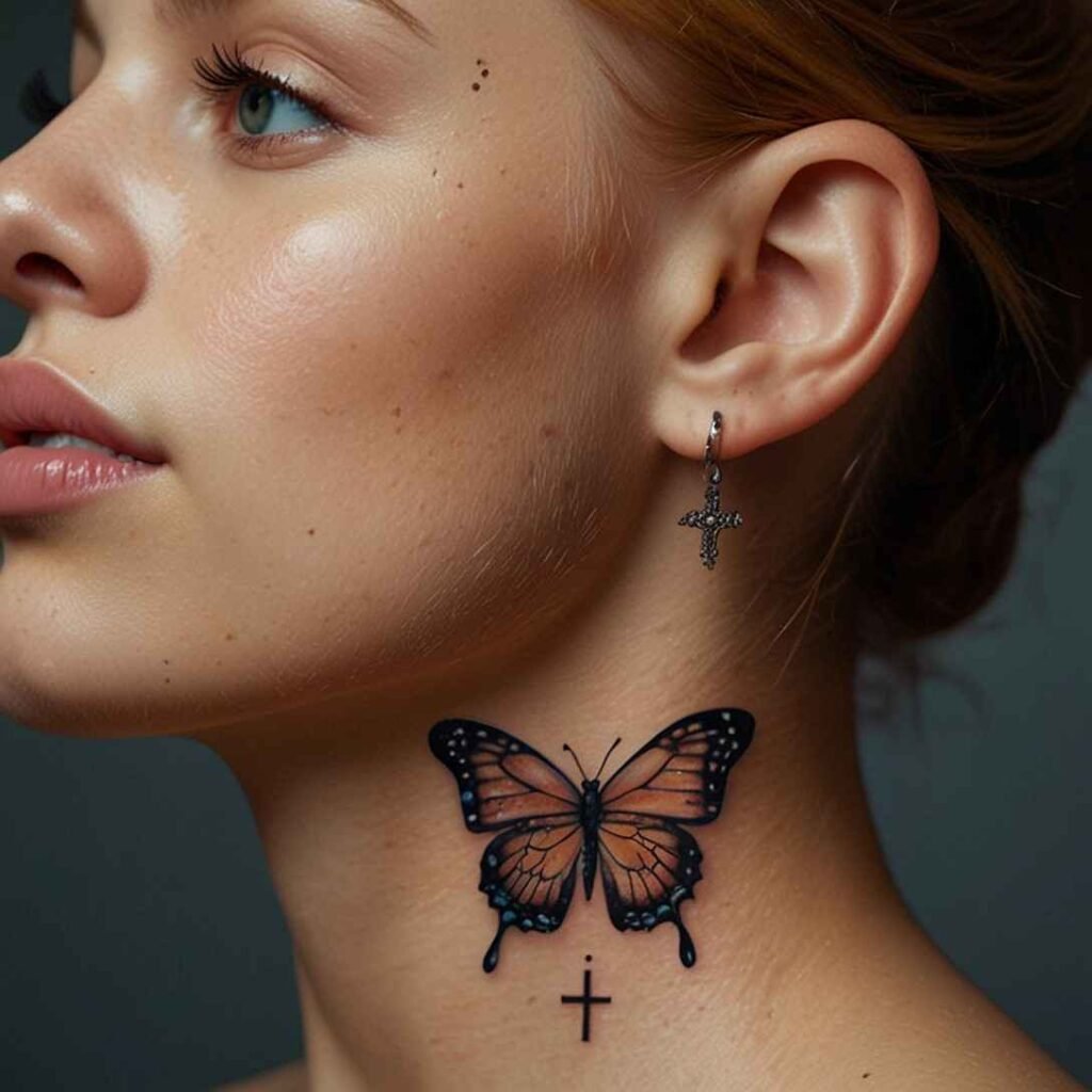 Butterfly neck tattoos for women are more than just beautiful art; they hold deep meanings. Each design tells a unique story about transformation, strength, and freedom.