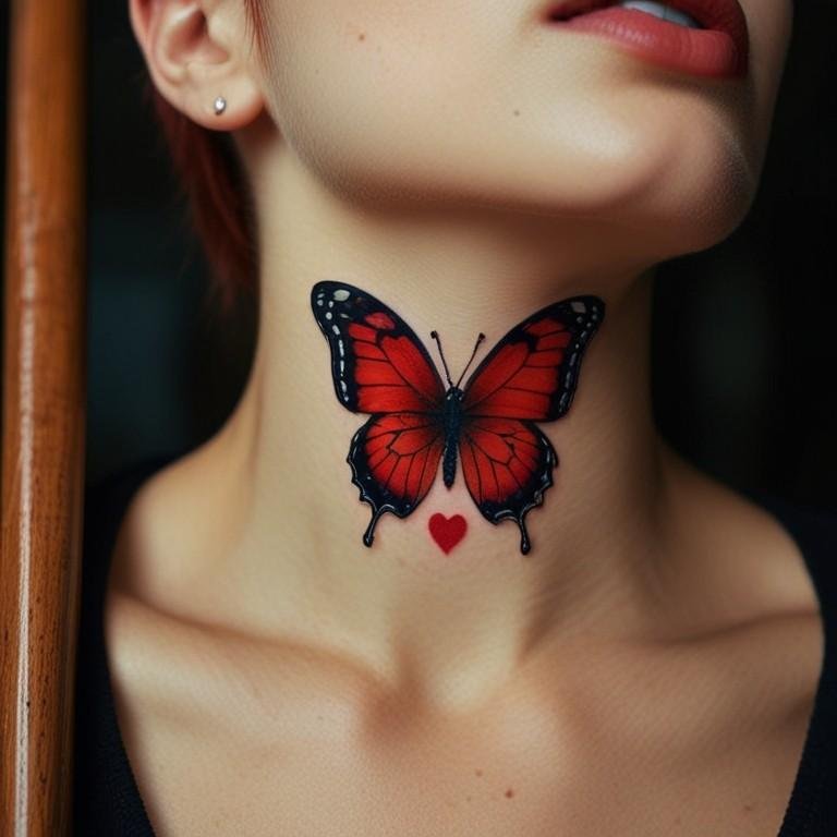 Incorporating a heart into a red butterfly tattoo adds a layer of meaning. This design symbolizes love, compassion, and connection. It’s perfect for women who want to celebrate their relationships or express self-love and acceptance.