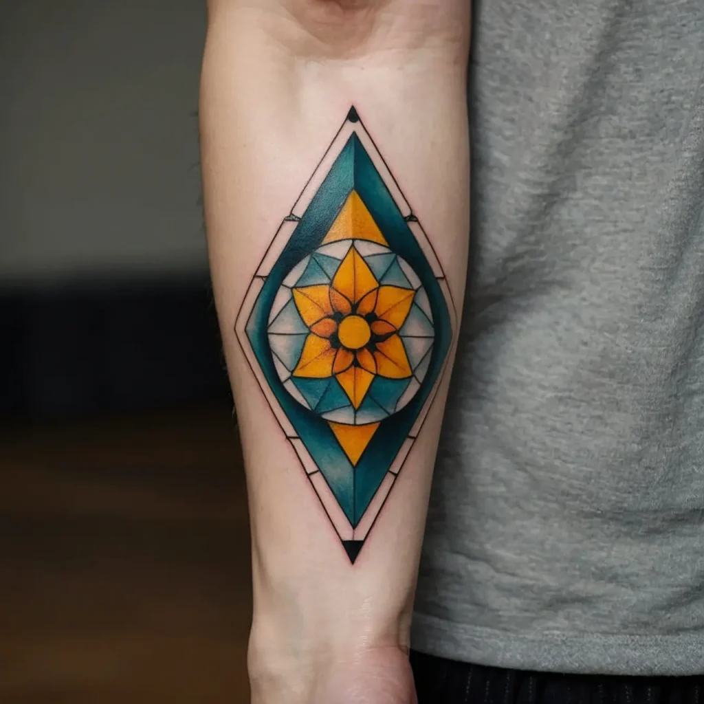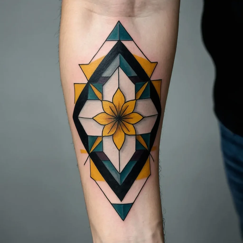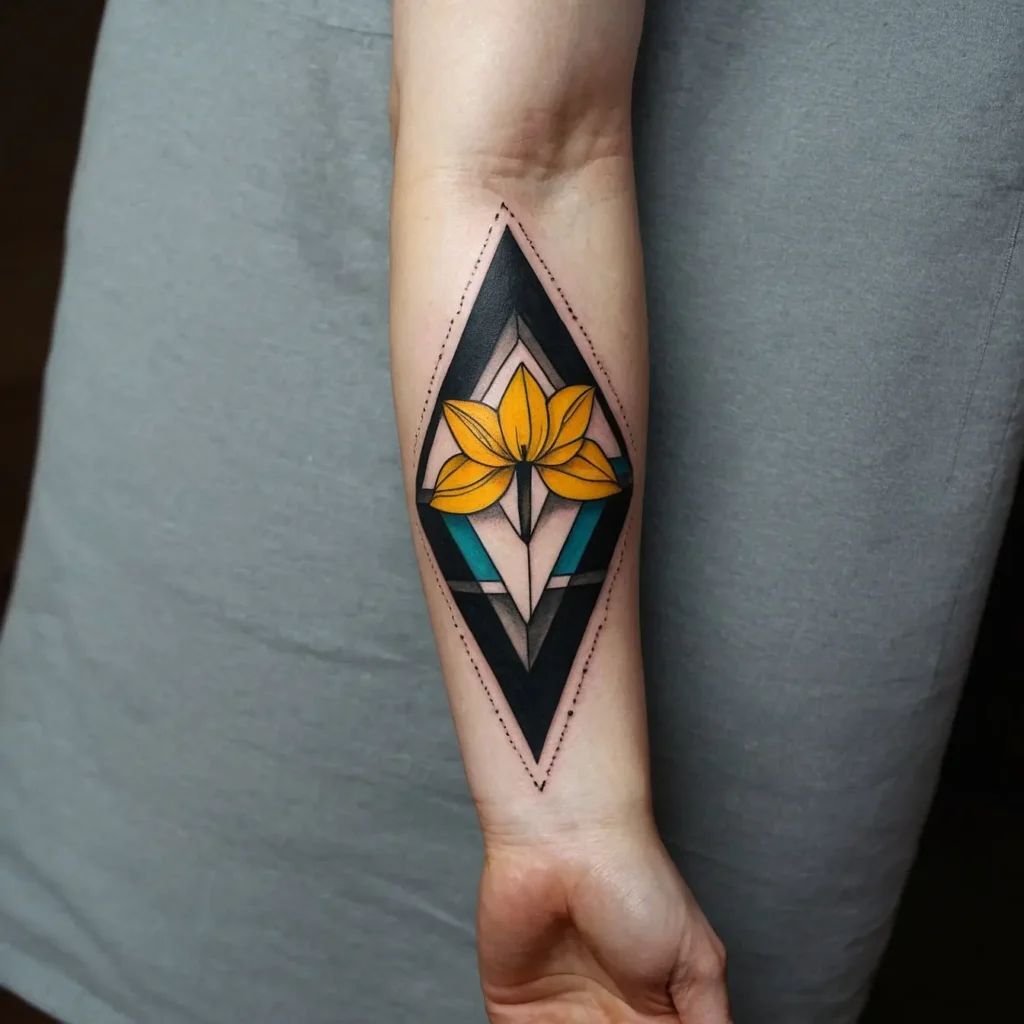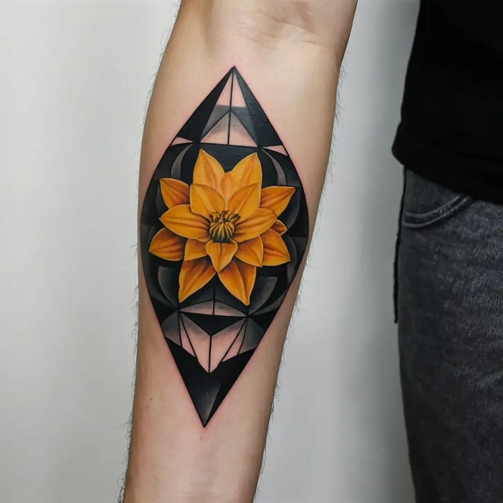 Integrating geometric shapes with the narcissus flower creates a modern look. This design represents balance and harmony, making it a stylish choice for contemporary tattoo enthusiasts.