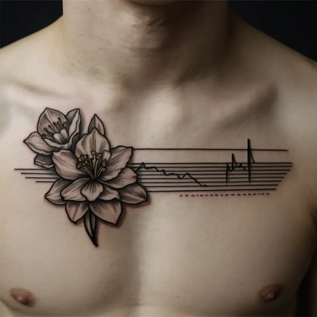 A design featuring the narcissus alongside a heartbeat line symbolizes life and vitality. It’s a beautiful tribute to the joy of living, making it perfect for those who embrace life fully.