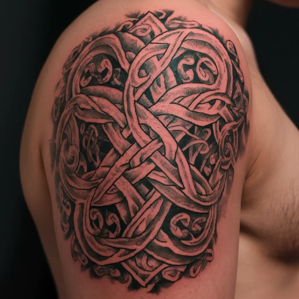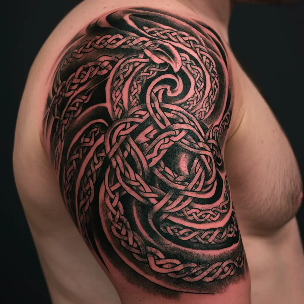 Personalized Description: Celtic knotwork tattoos are made up of endless loops, weaving into intricate patterns. They’re often associated with the upper arm for their ability to wrap around it seamlessly.